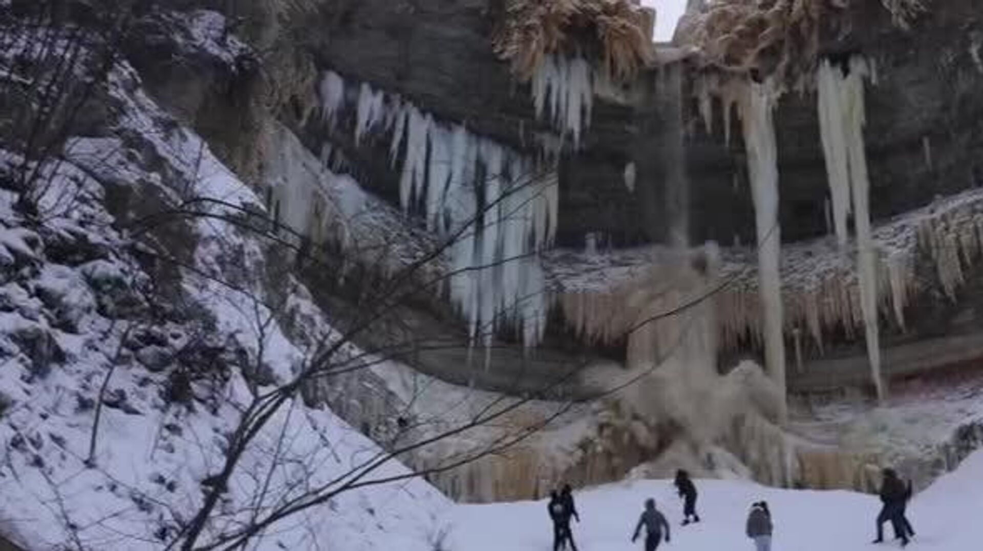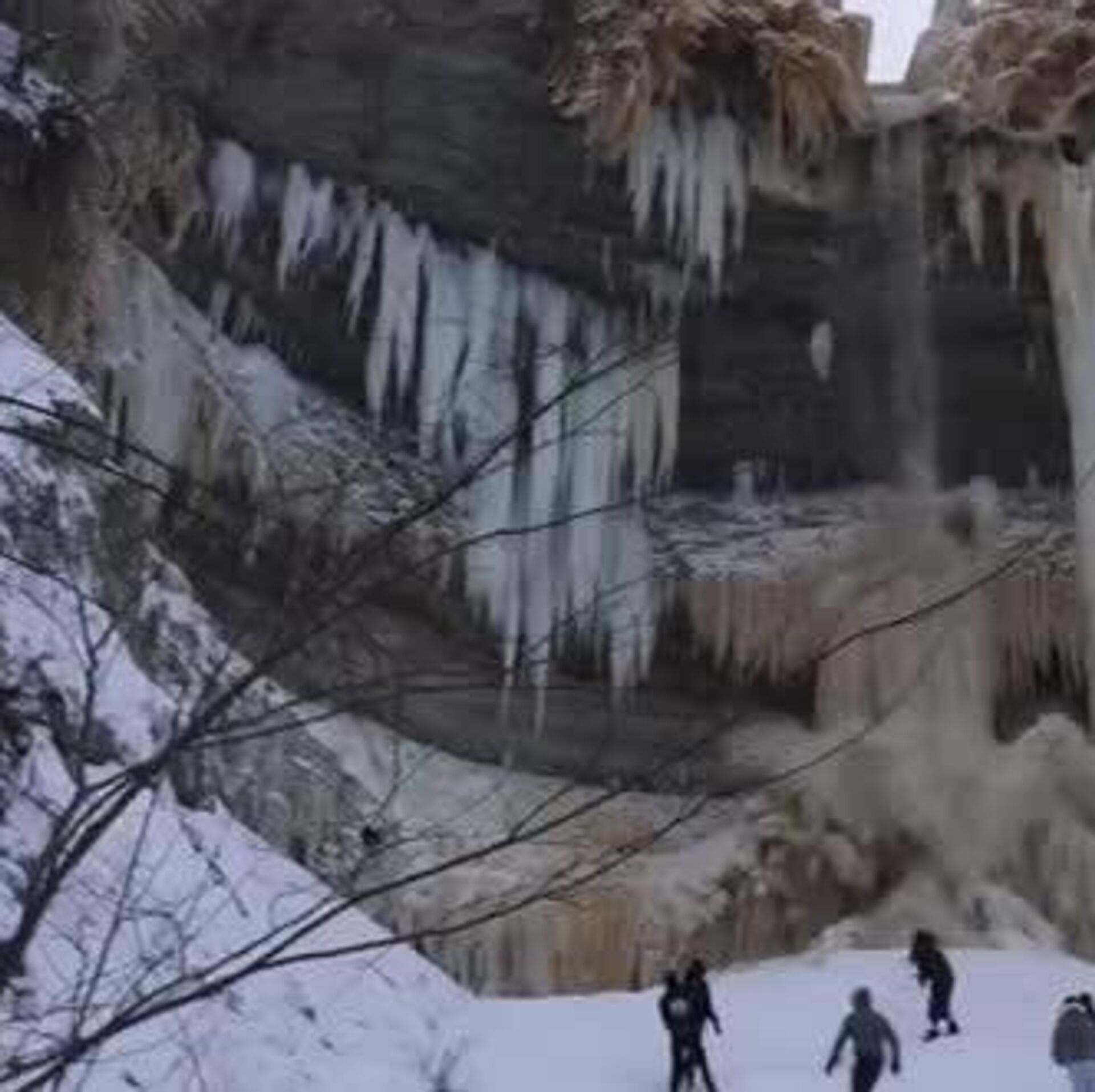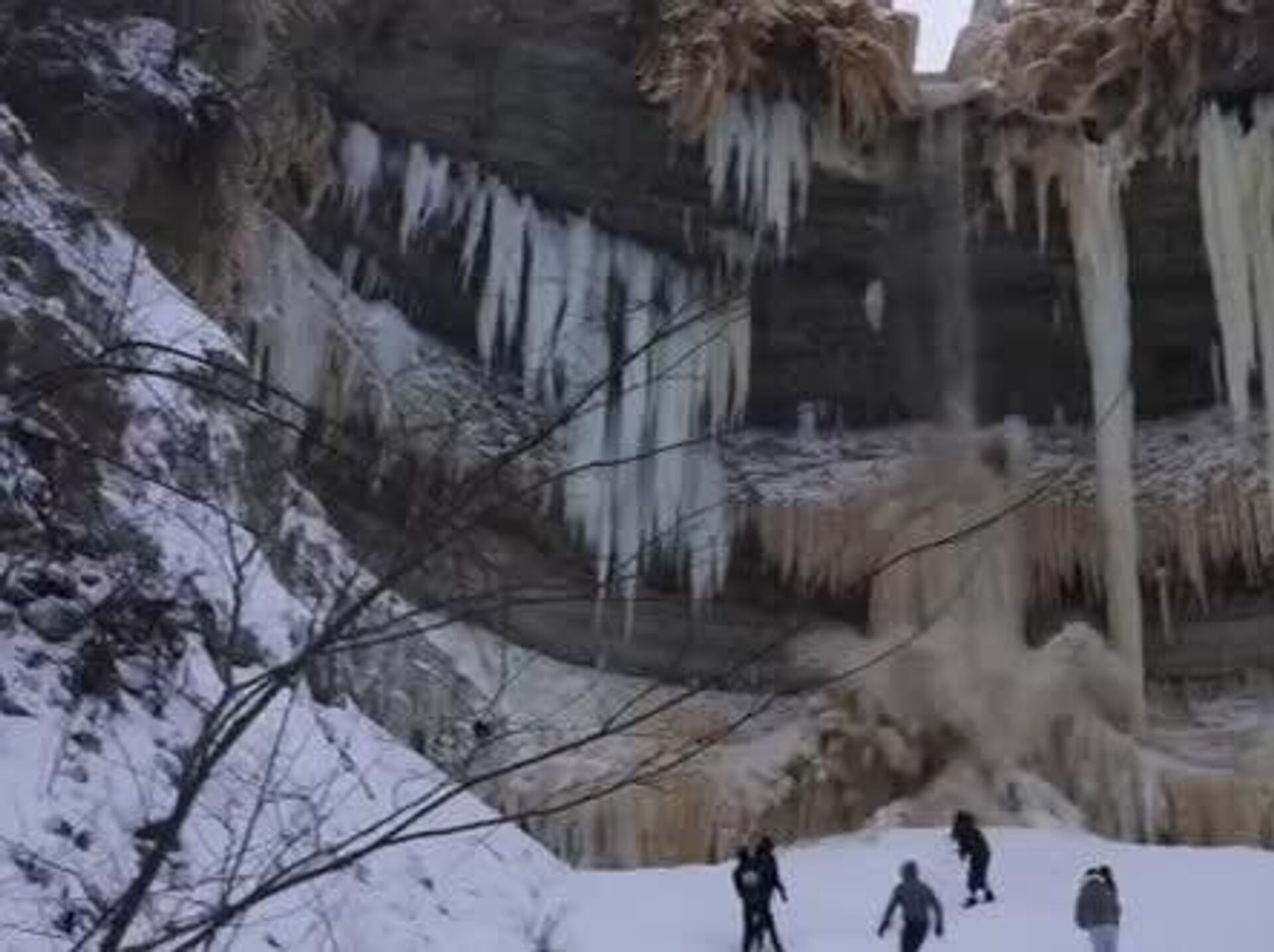 در استونی، آبشار یخزدهی والاسته بر روی گردشگران فرو ریخت