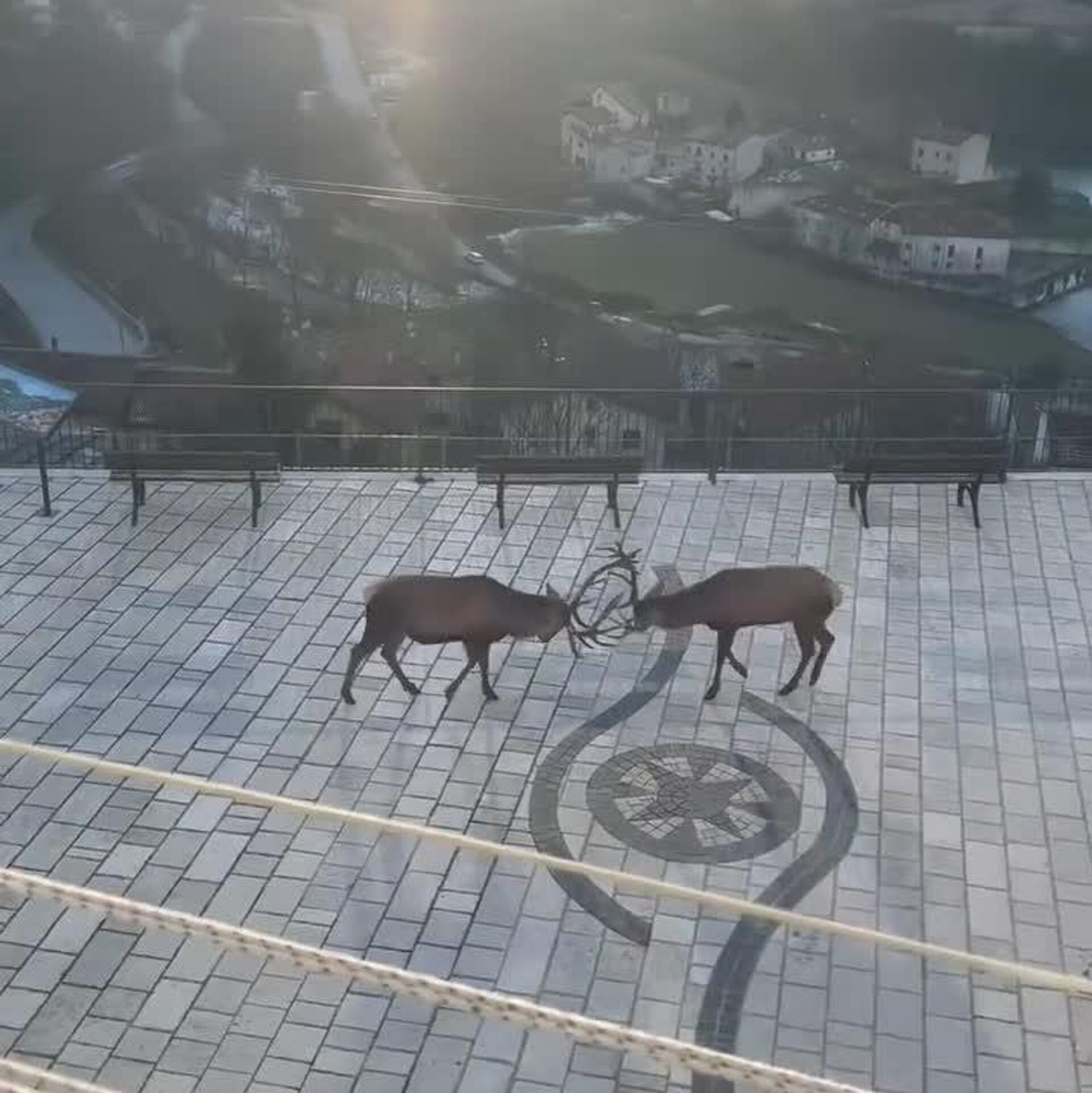 ▫دوئل دو گوزن نر در میدان مرکزی یکی از شهرهای ایتالیا