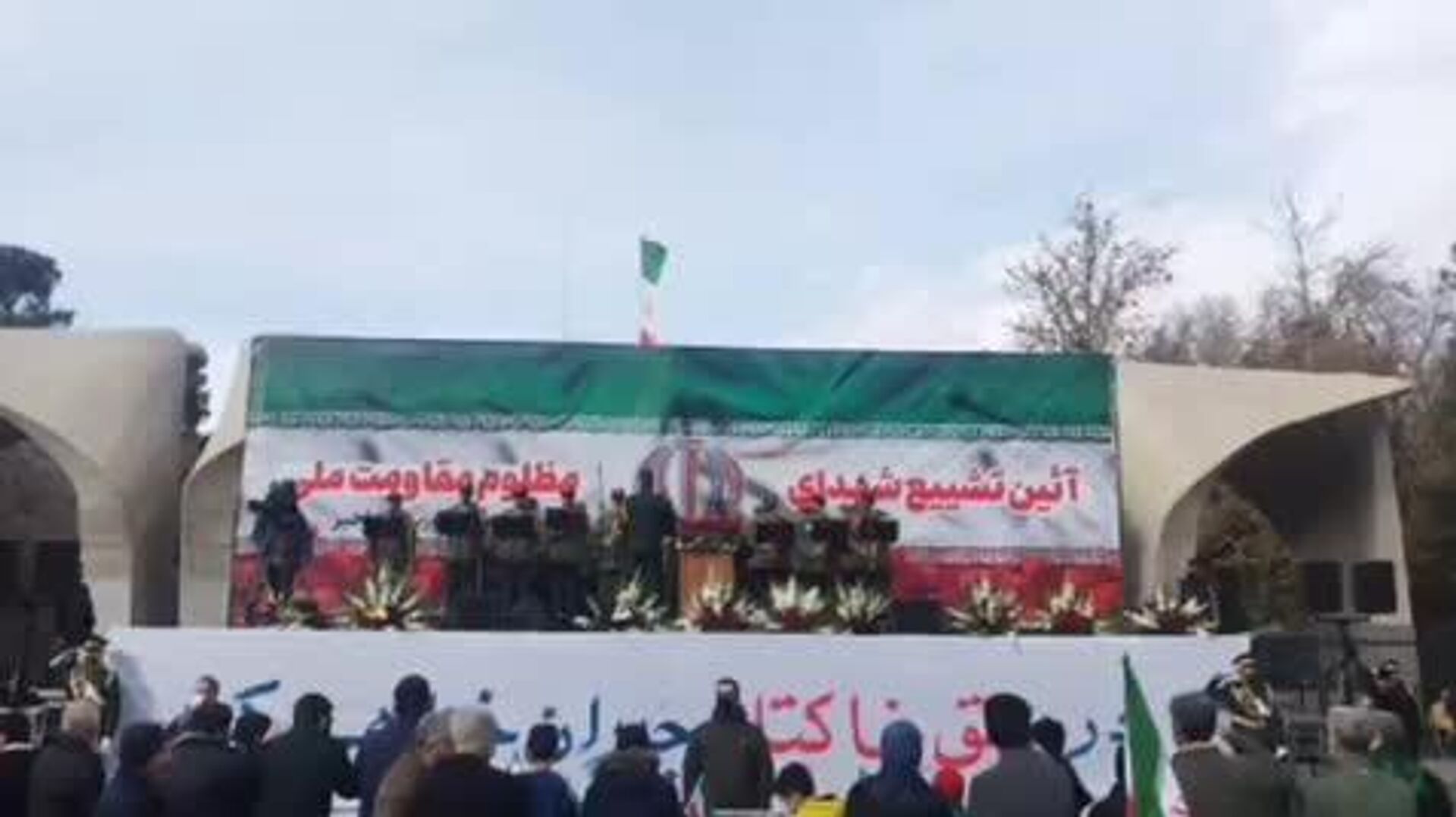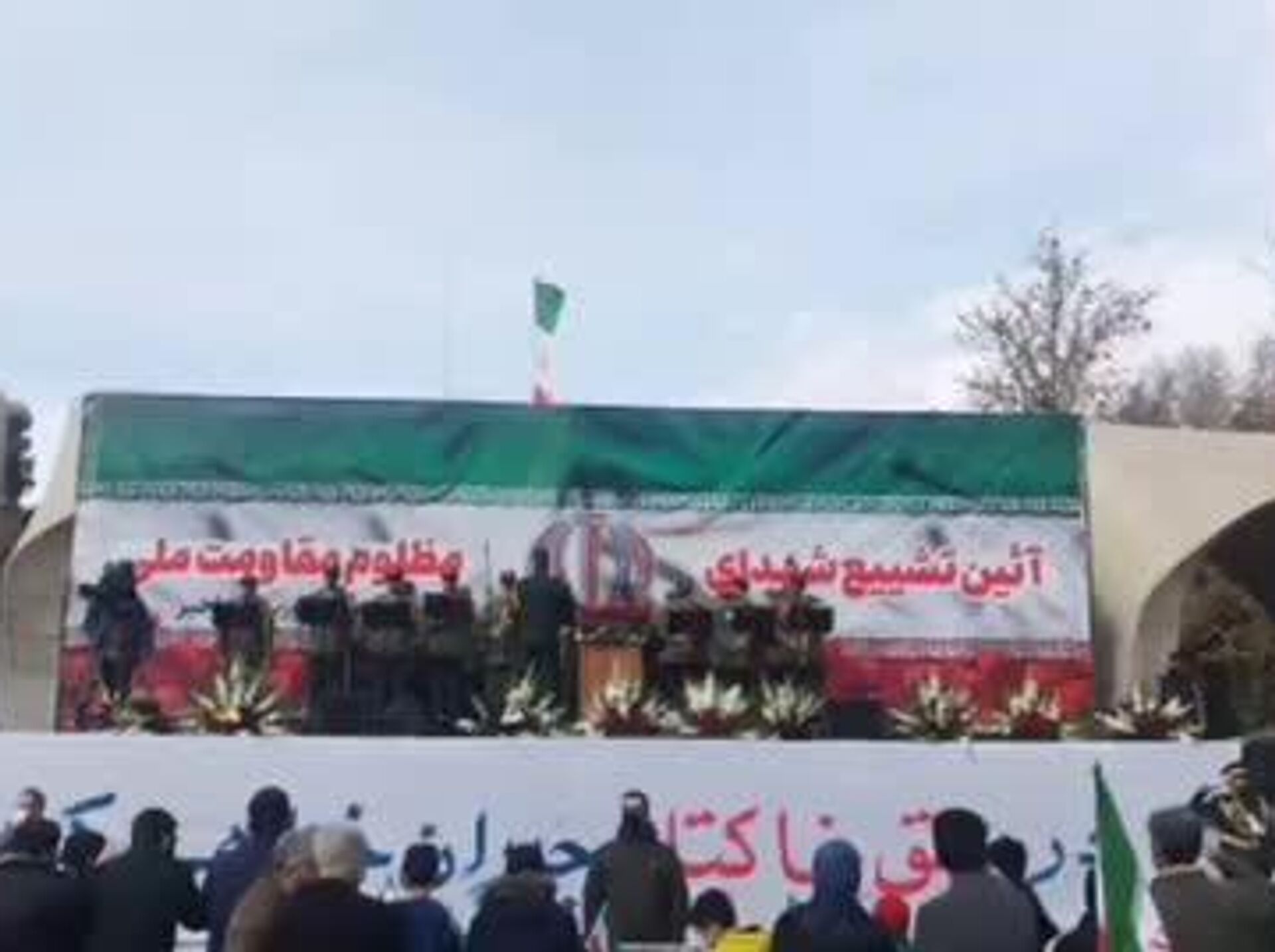 14:55 14.01.2026 (بروز رسانی شده: 15:00 14.01.2026) اجرای سرود جمهوری اسلامی ایران در مراسم آئین تشییع شهدای مظلوم مقاومت ملی