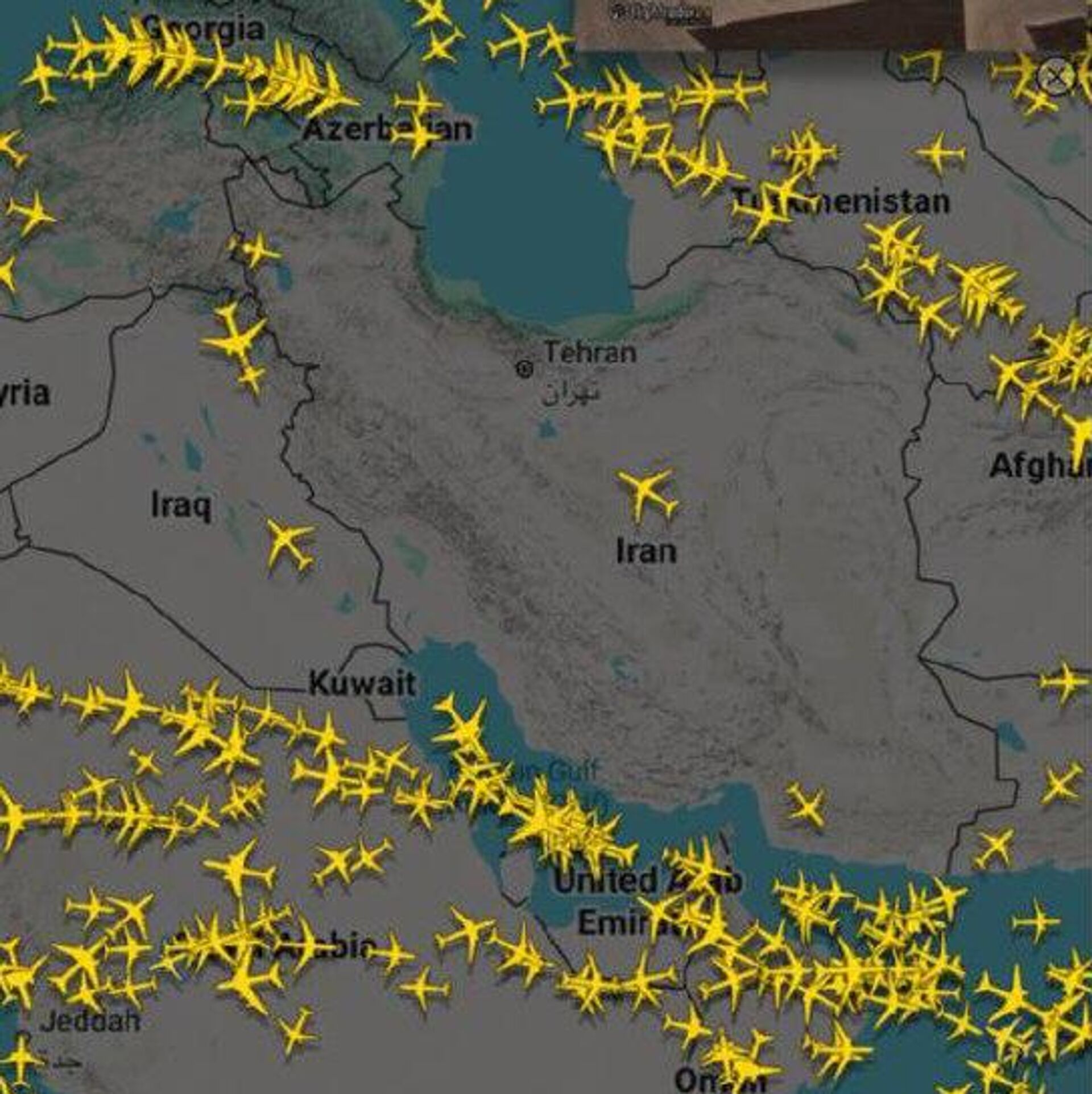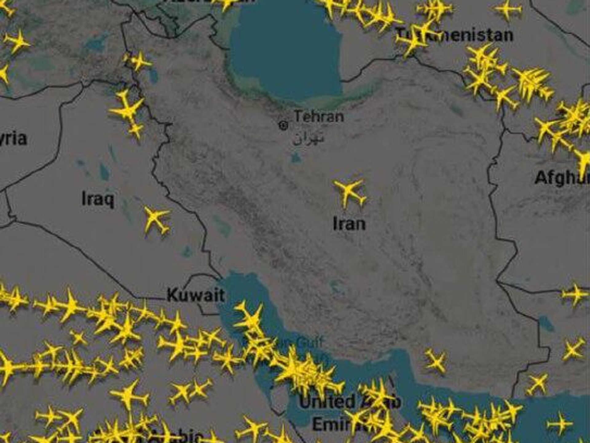 بر اساس داده های سایت فلایت رادار، آسمان ایران تقریبا خالی از پرواز است