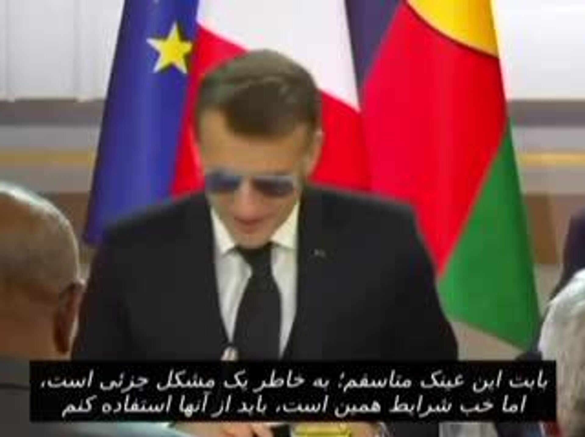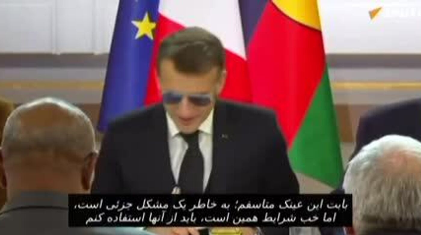 رئیس جمهور فرانسه در جلسهای در کاخ الیزه گفت: «بابت عینک عذرخواهی میکنم، به دلیل یک مشکل جزئی عینک گذاشتم.»