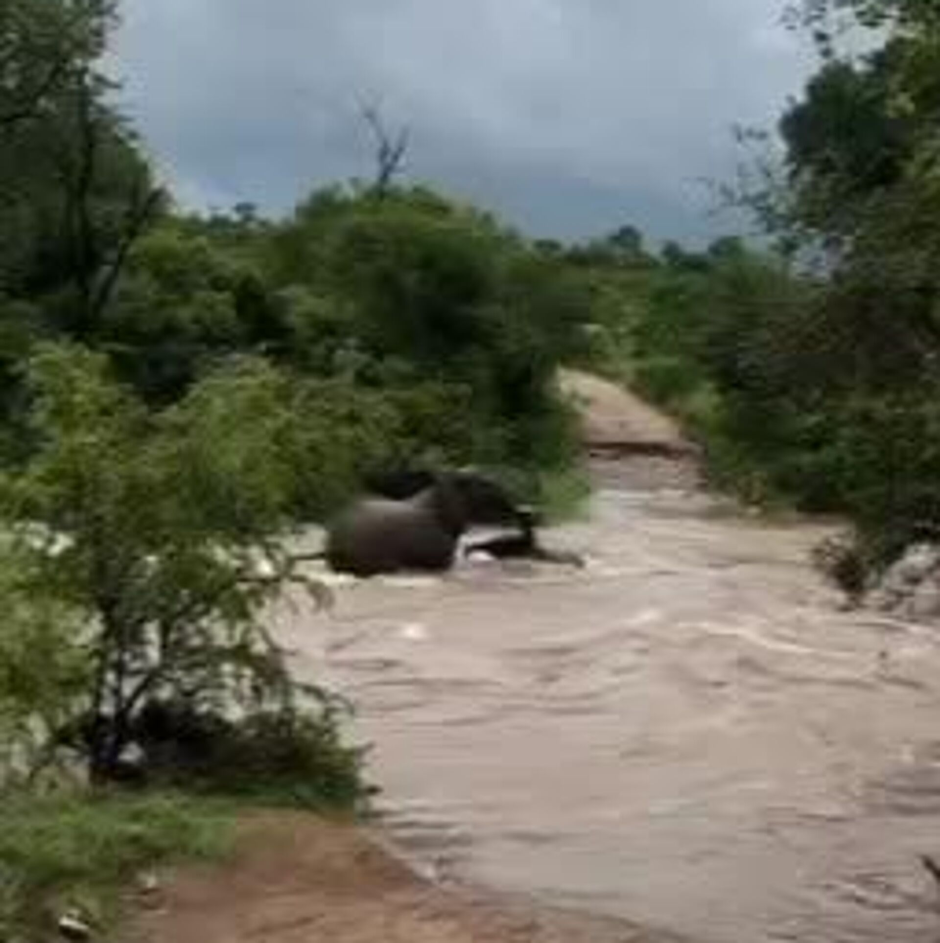 در بحبوحه سیلهای ویرانگری که چندین استان در آفریقای جنوبی را ویران کرده است, این فیل کودکش را نجات داد.