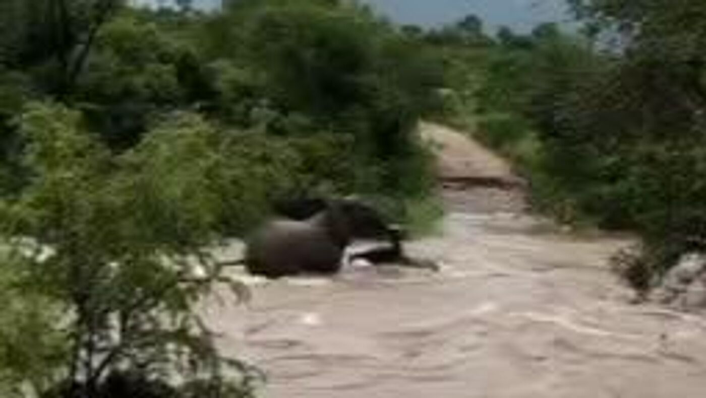 عملیات نجات نفسگیر: یک فیل مادر، فرزندش را از رودخانه سیل زده در پارک ملی کروگر، آفریقای جنوبی نجات داد