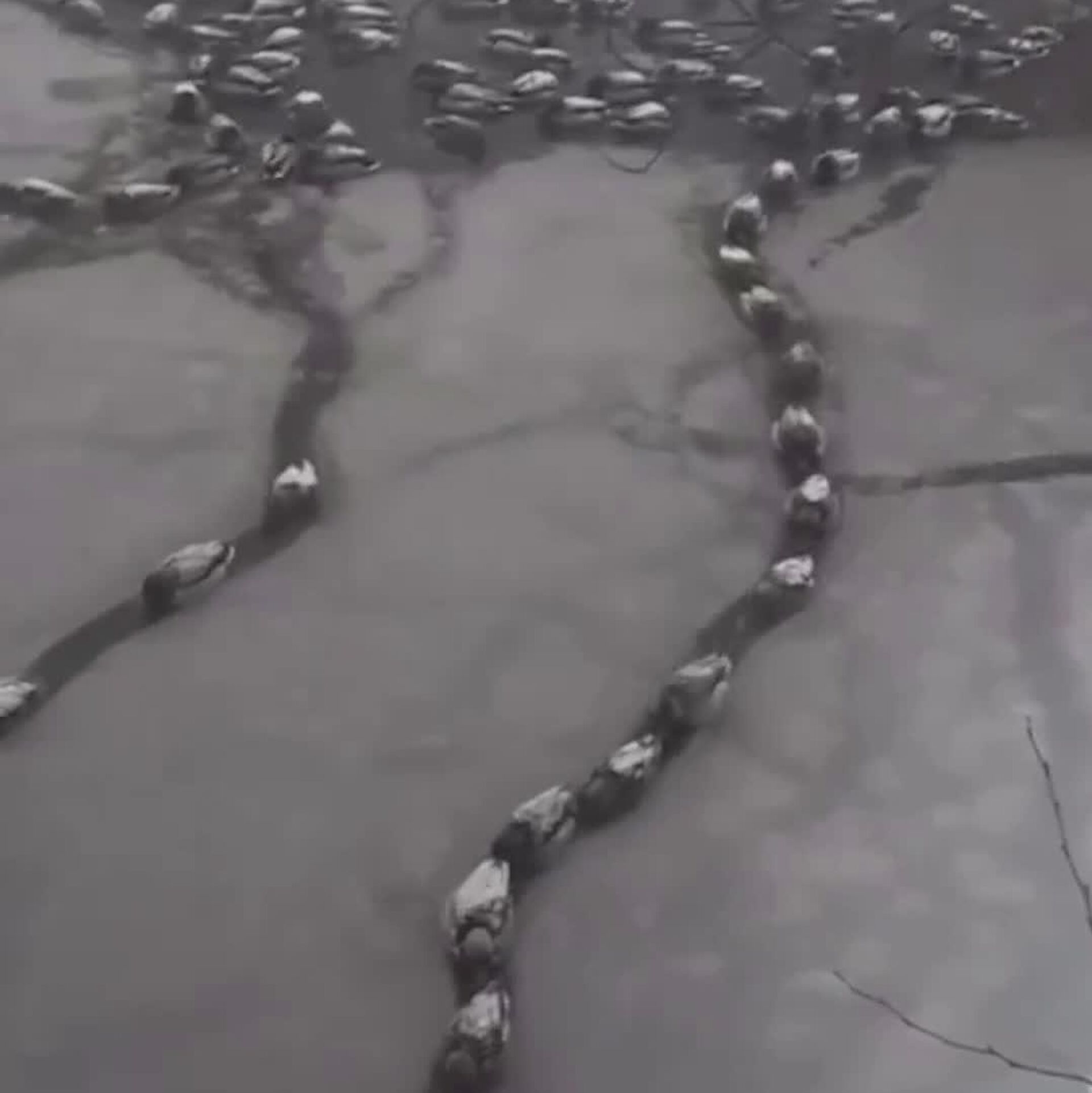 همه اینها به دلیل بارش برف اخیر است که حوضچه های محلی را با برف و یخ پوشانده است. اما پرندگان خونسردی خود را از دست ندادند و مسیرهای جدیدی را ایجاد کردند. اینکه آیا آنها قوانین راهنمایی و رانندگی خود را دارند یا خیر، هنوز مشخص نیست.