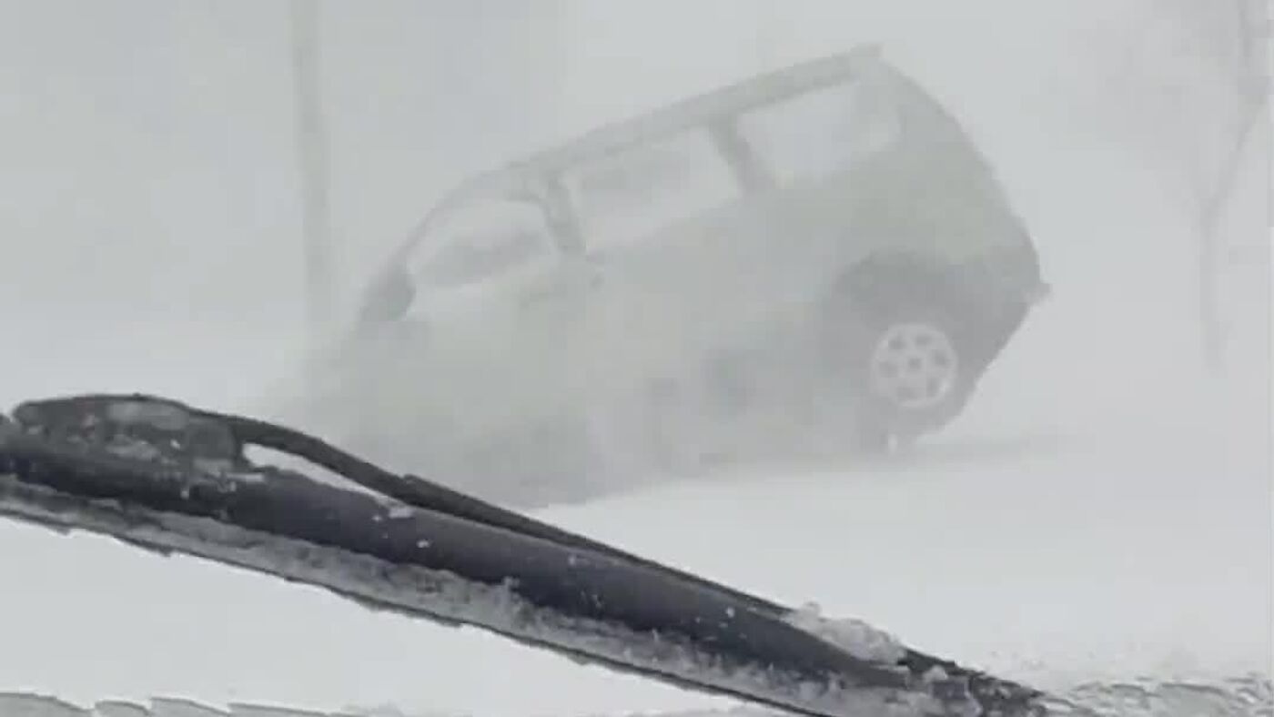 گرفتاری خودروها در جزایر کوریل روسیه در میان برف ها