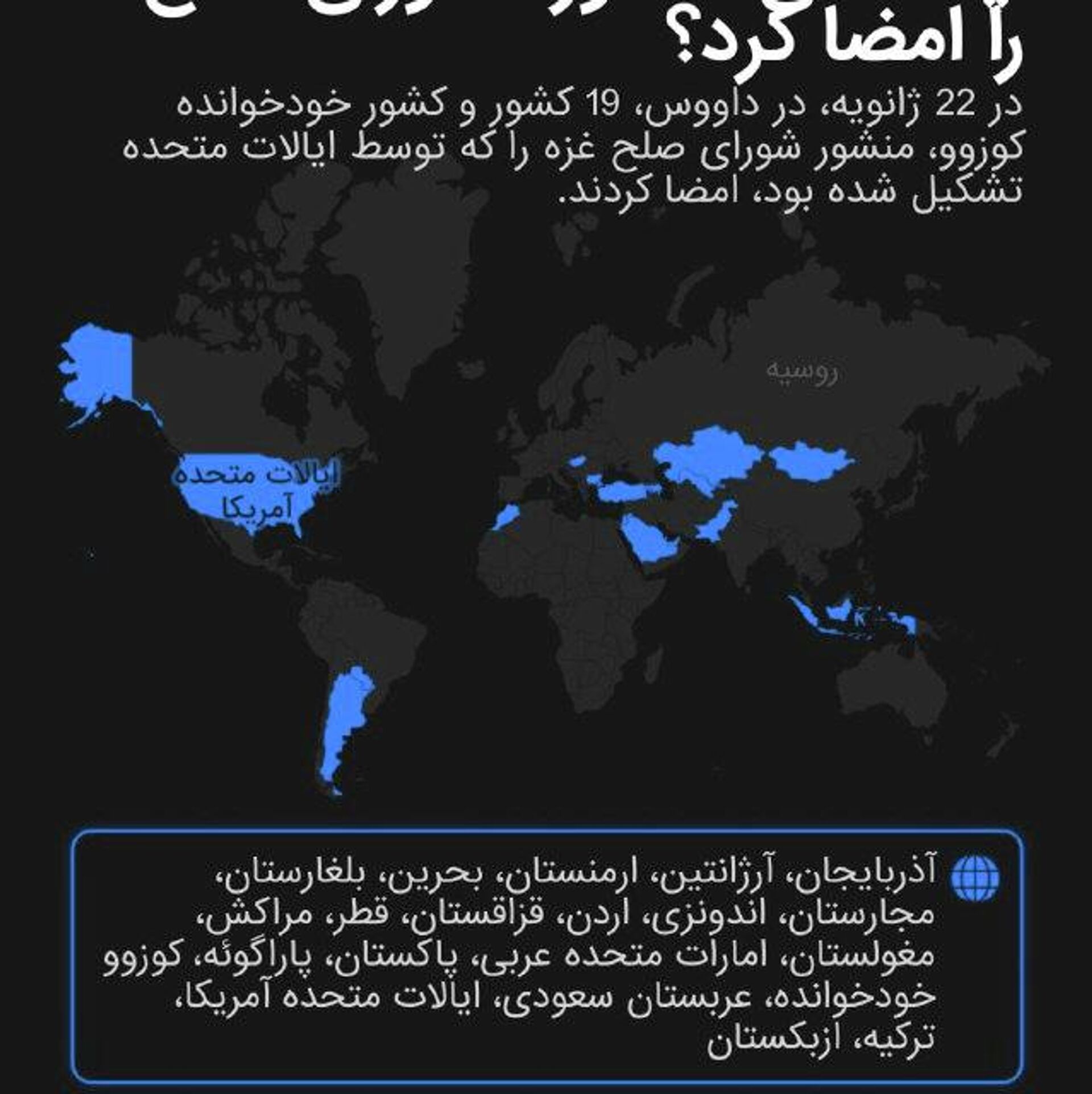 کدام کشورها منشور شورای صلح غزه به رهبری ایالات متحده را امضا کردند؟