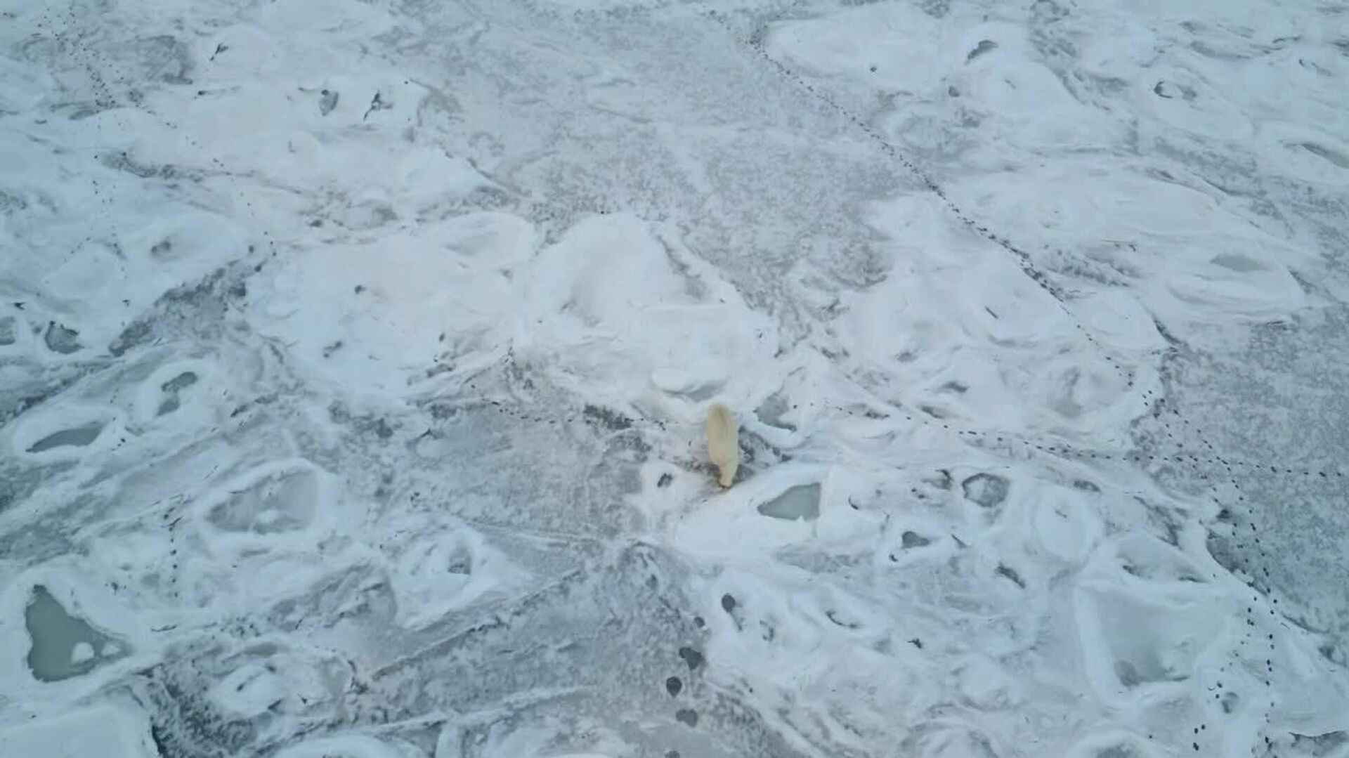 یک خرس قطبی در دریای کارا با کشتی یخشکن هستهای سیبیر روسیه مواجه میشود