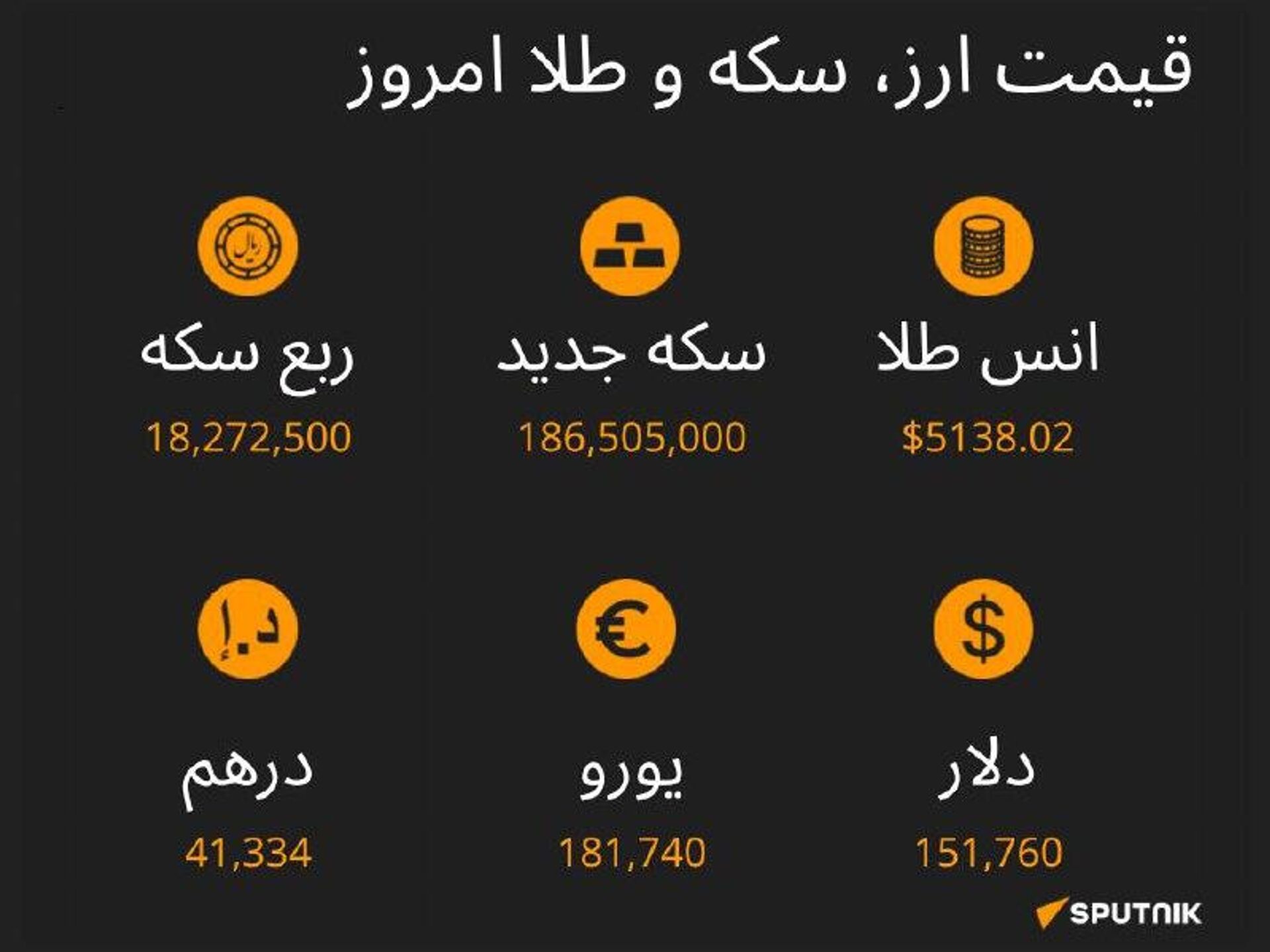 نرخ ارز، سکه و طلا تا ساعت 11:00 ما را در سایت و تلگرام اسپوتنیک دنبال کنید Sputnik Iran | Telegram