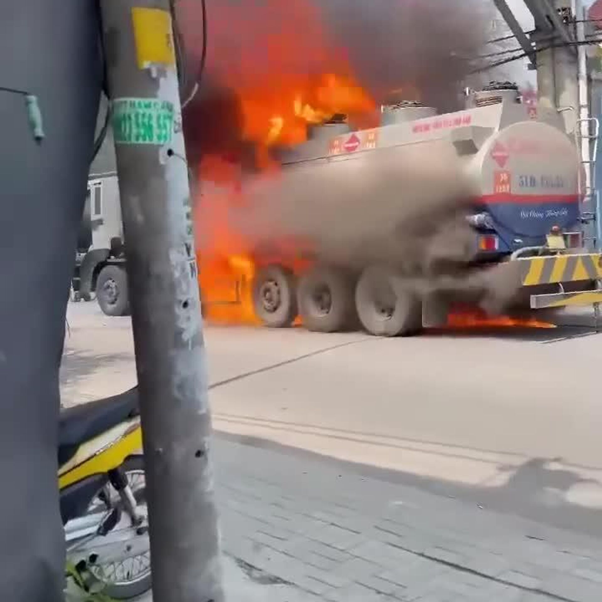 آتشسوزی بزرگ در شهر هوشی مین: آتش گرفتن یک کامیون سوخت در جاده