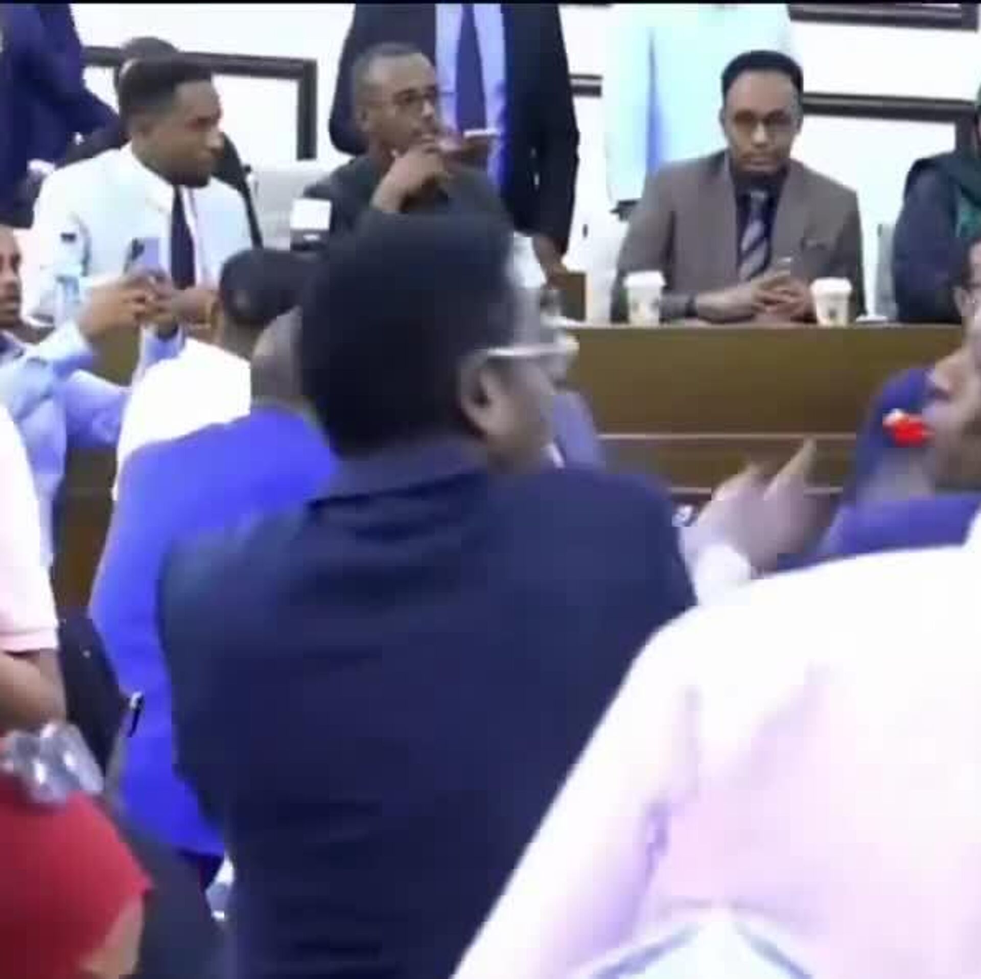 درگیری بین عبداللهی شیخ اسماعیل فرتاج، وزیر امنیت سومالی و حسن فرینبی، نماینده پارلمان این کشور▫این درگیری در جریان بحث در مورد اصلاحات قانون اساسی رخ داد. ما را در سایت و تلگرام اسپوتنیک دنبال کنید Sputnik Iran | Telegram
