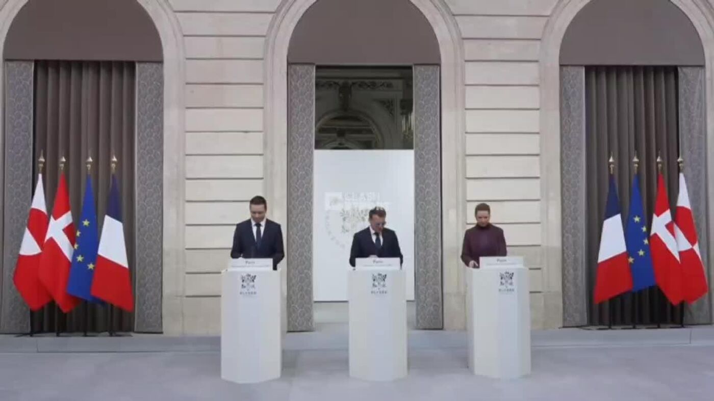 مکرون بار دیگر در حالی که میزبان مته فردریکسن، نخست وزیر دانمارک بود، با عینک آفتابی در ملاء عام ظاهر شد.