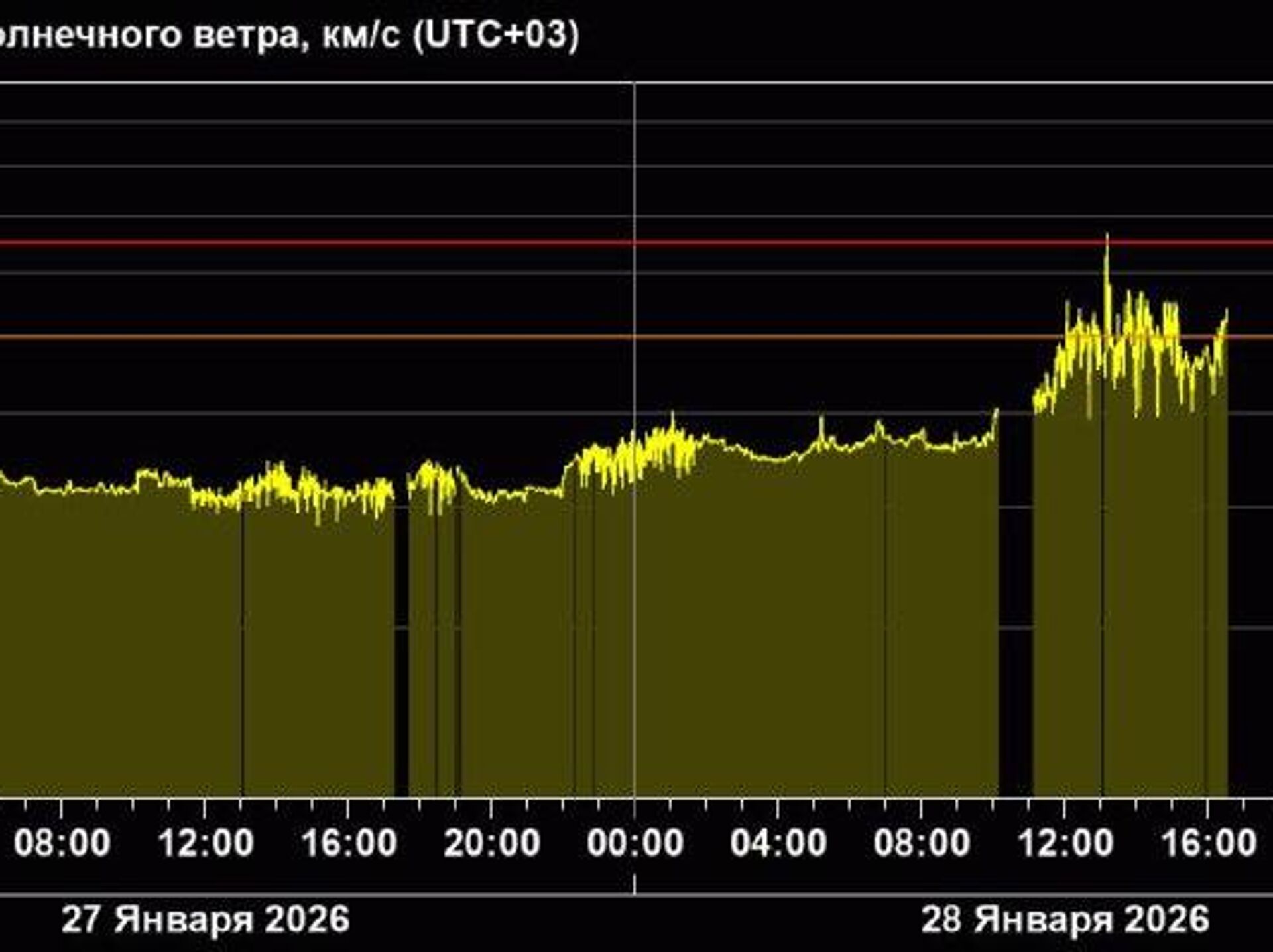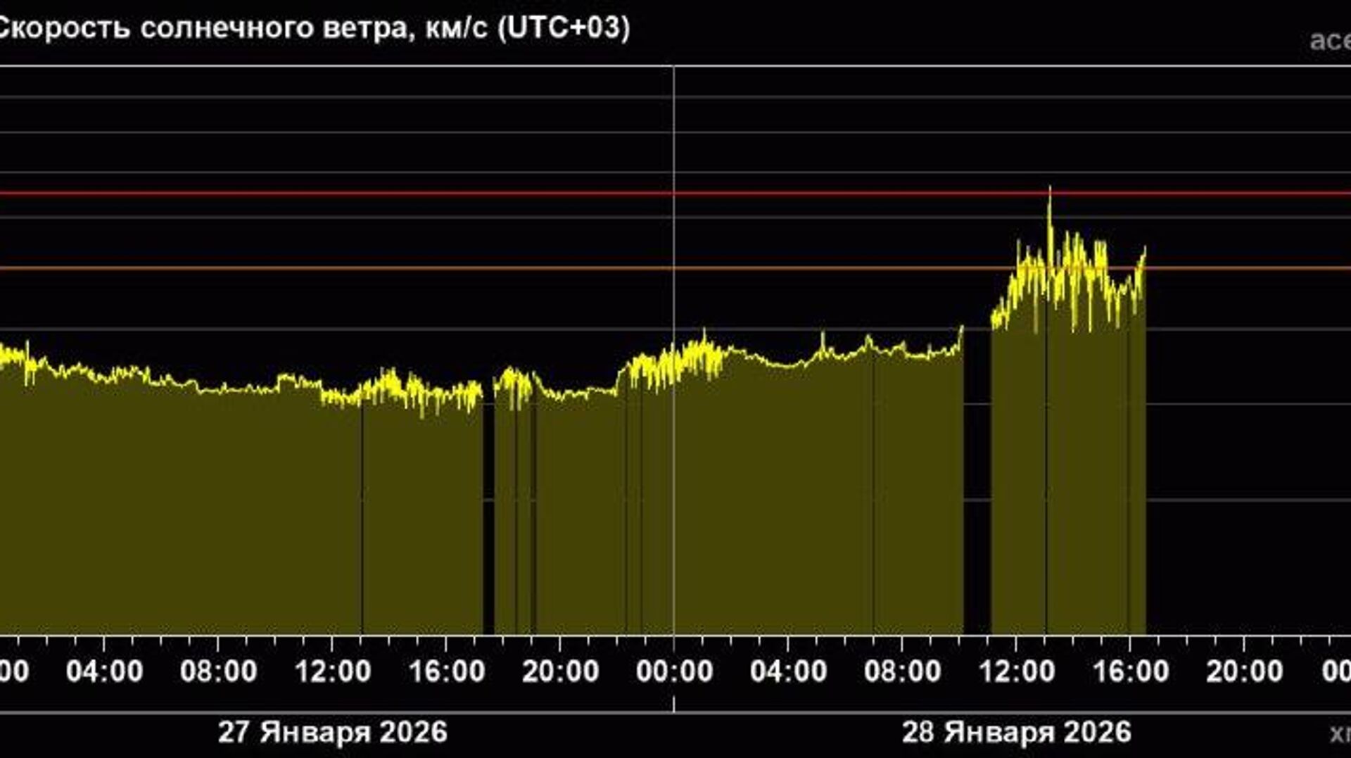 به گفته دانشمندان آزمایشگاه نجوم خورشیدی موسسه تحقیقات فضایی آکادمی علوم روسیه، این امر به دلیل جریان باد خورشیدی از یک حفره تاجی است که به زمین میرسد.