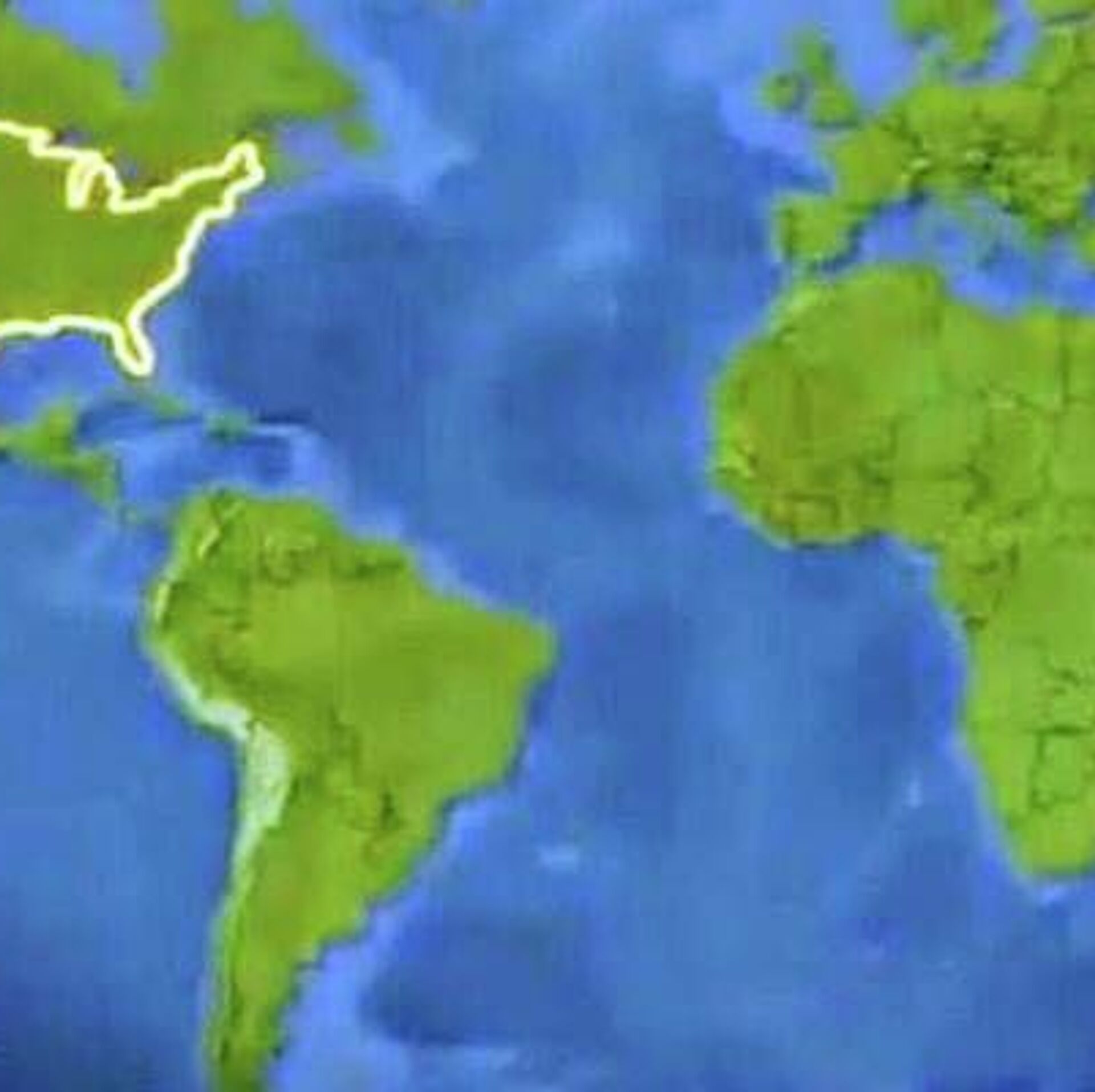 ایالات متحده در نیمکرهٔ غربی با رنگ زرد مشخص شده است.