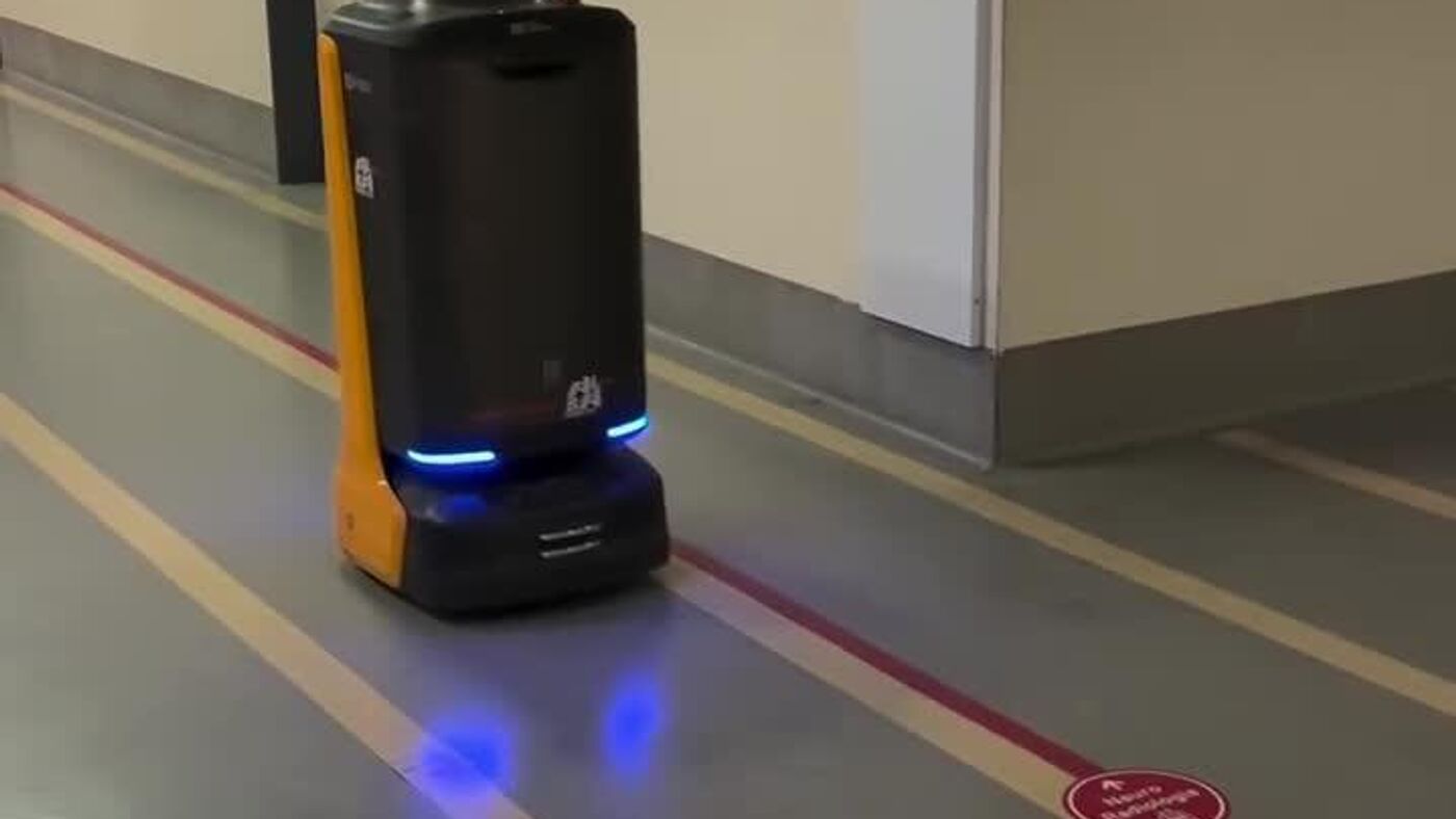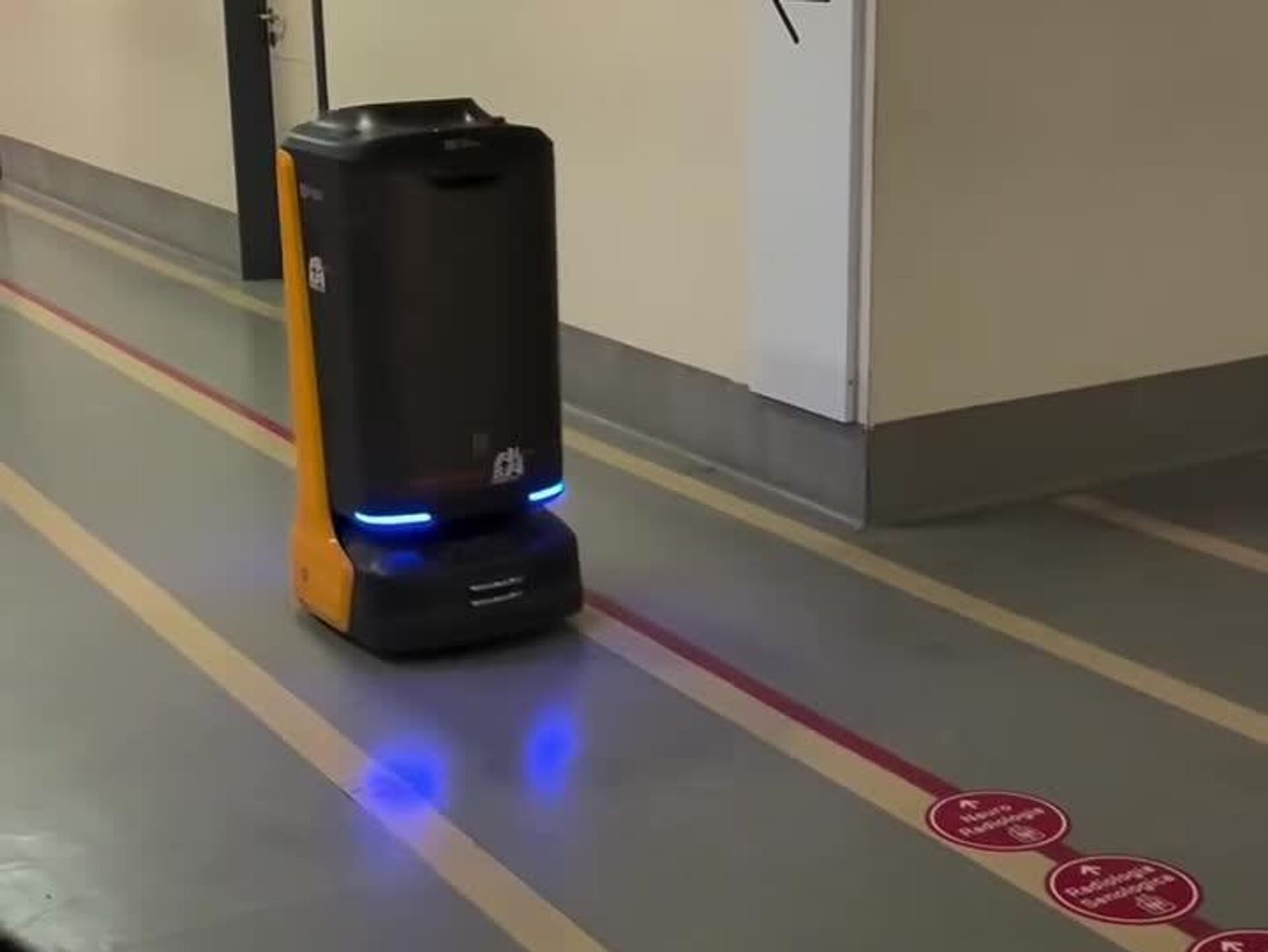 رباتی در کلینیکی در سن رافائله (میلان ایتالیا) نمونه آزمایشگاهی را بین محل جمعآوری و آزمایشگاه منتقل می کند