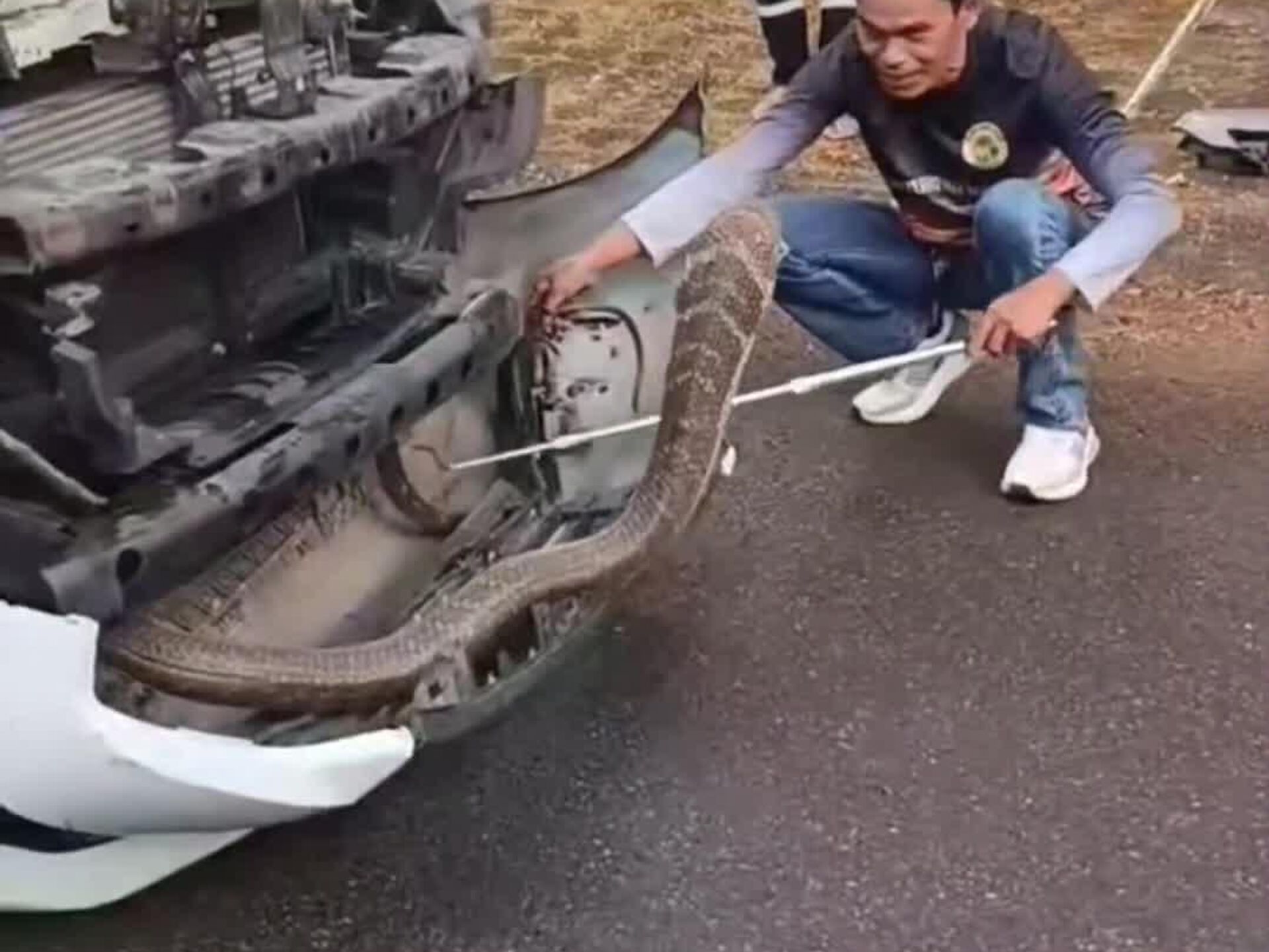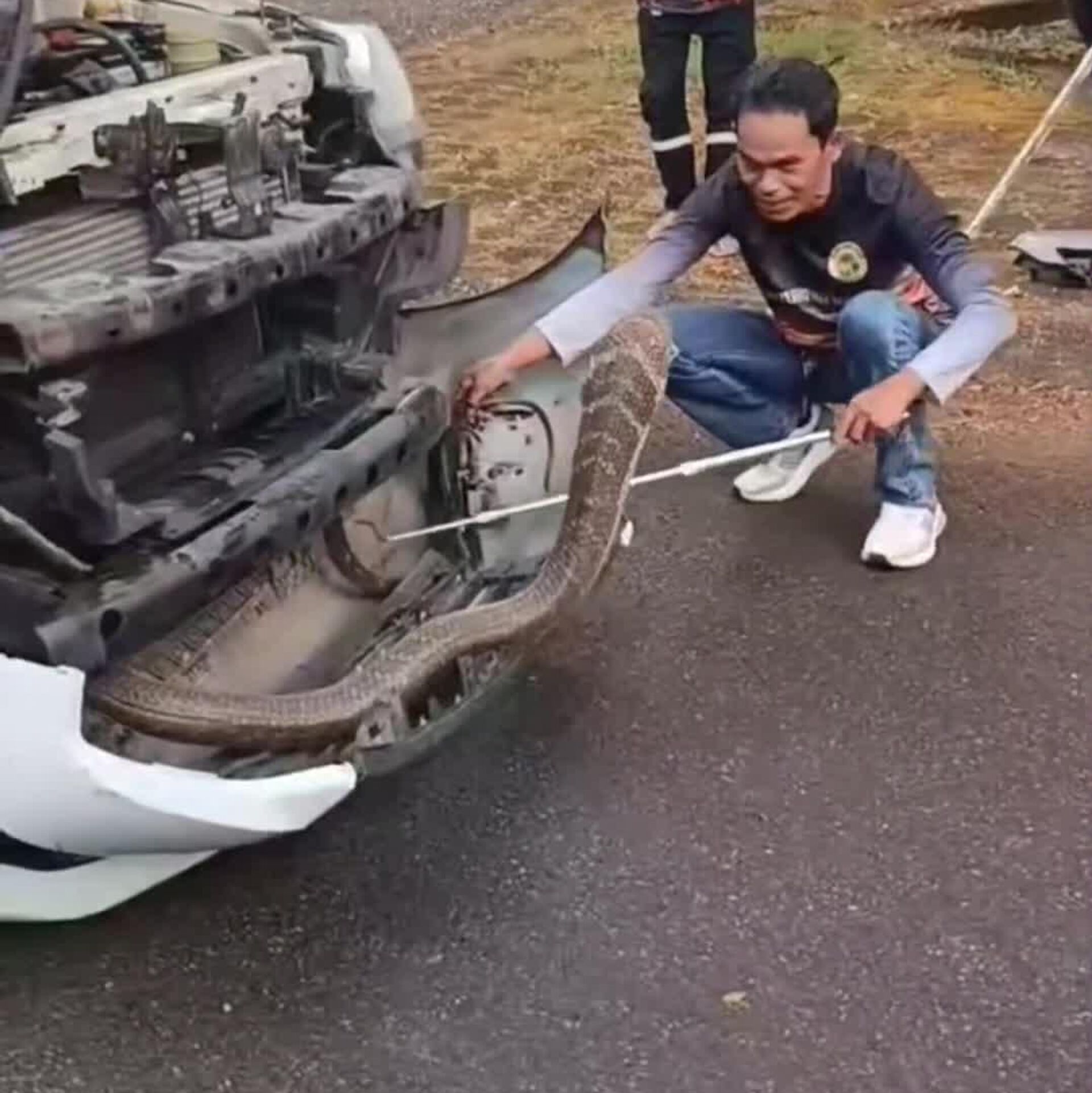 یک شاه کبرای تقریباً چهار متری در محفظه موتور یک وانت در استان فانگ نگا، جنوب تایلند پیدا شد