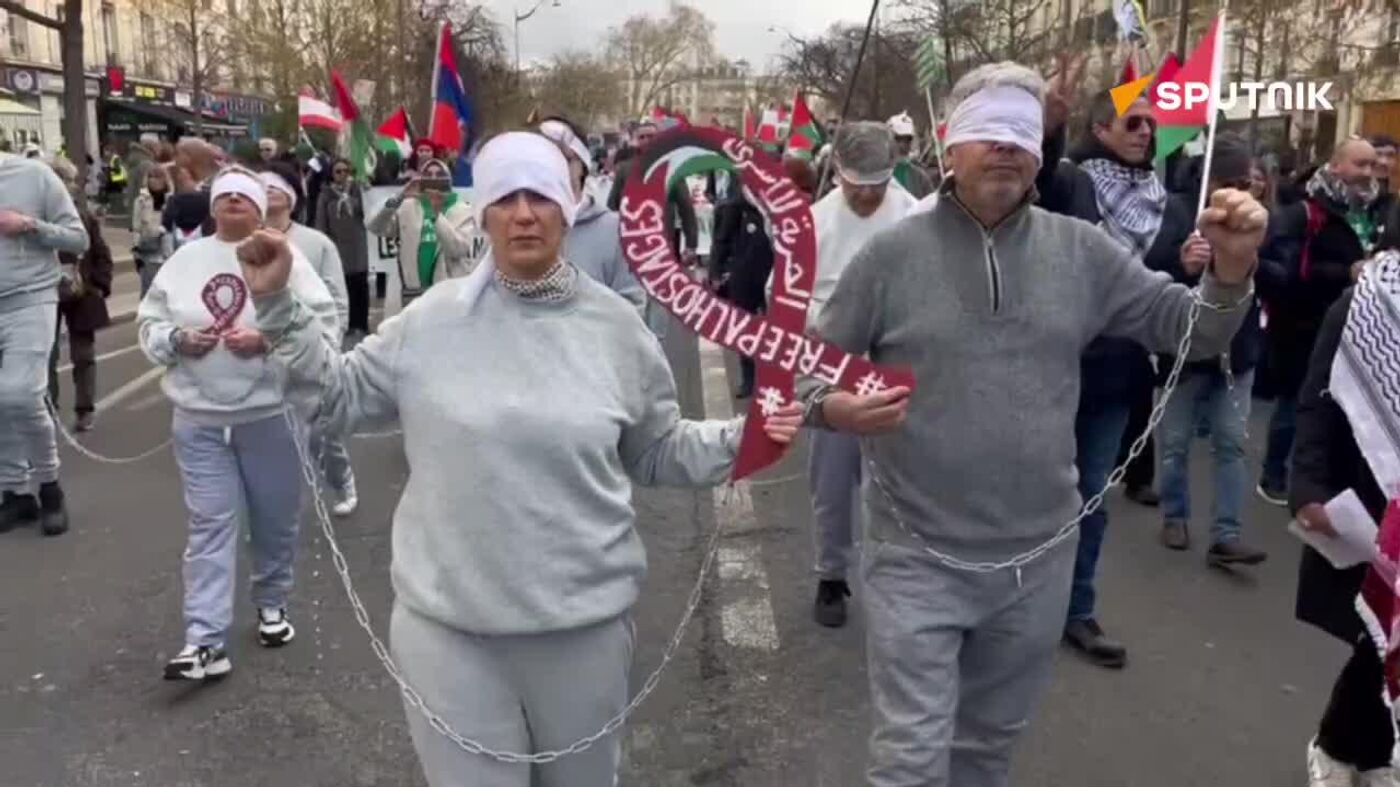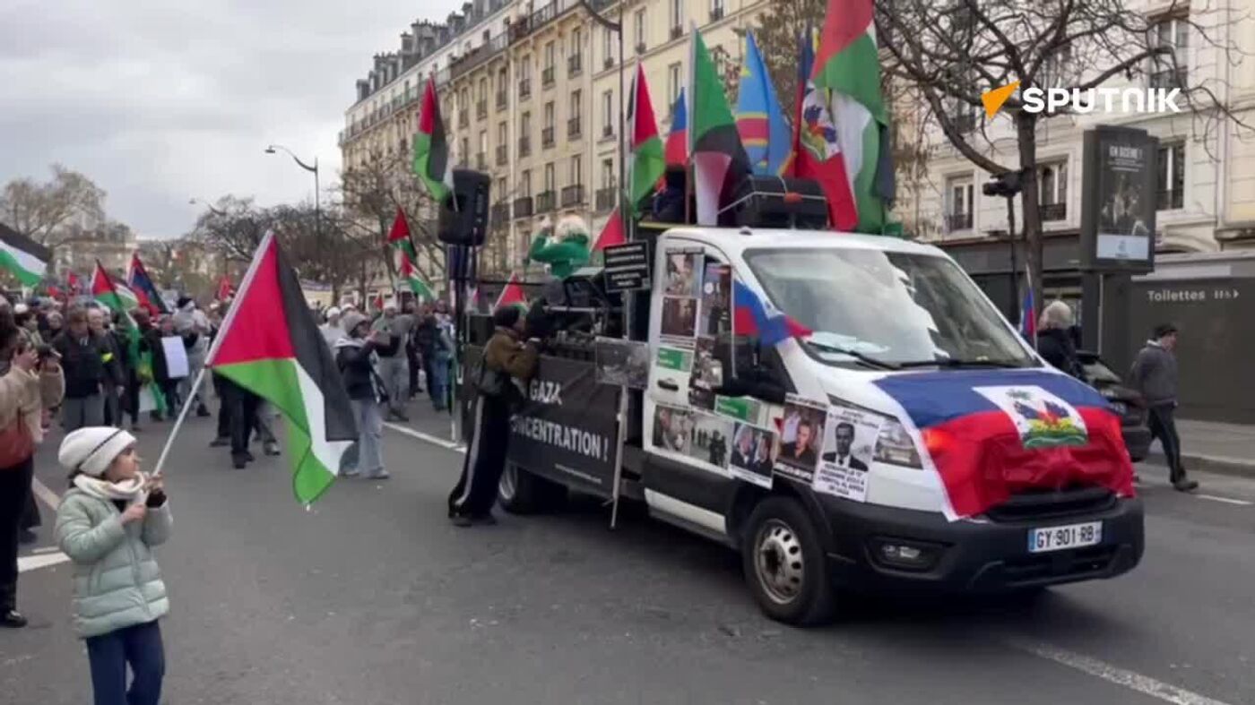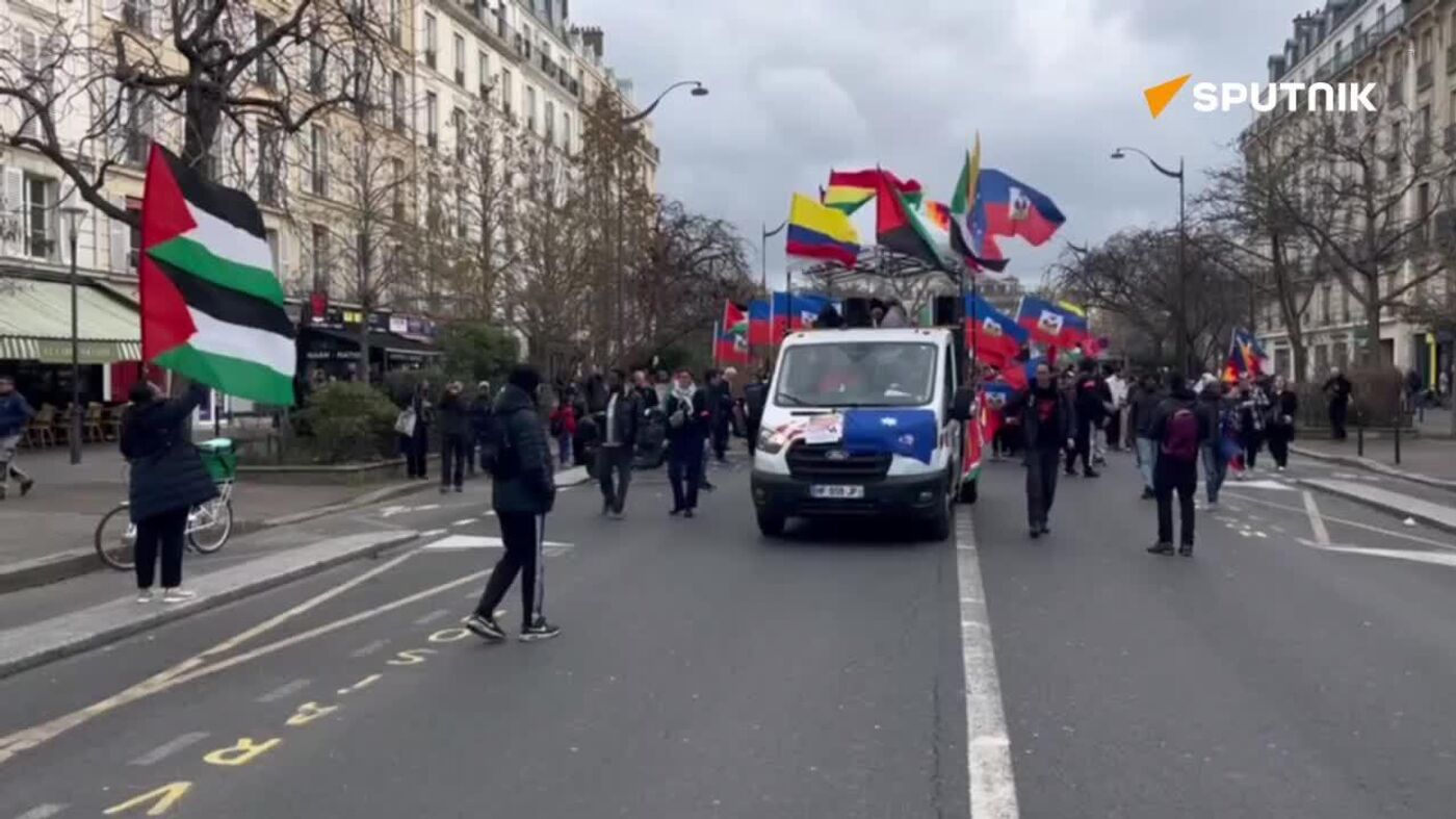 برگزاری تجمعی در دفاع از مردم مظلوم در پاریس با شعارهای «ناتو، از آفریقا برو بیرون!»، «فلسطین آزاد!»، «هائیتی مستقل!»