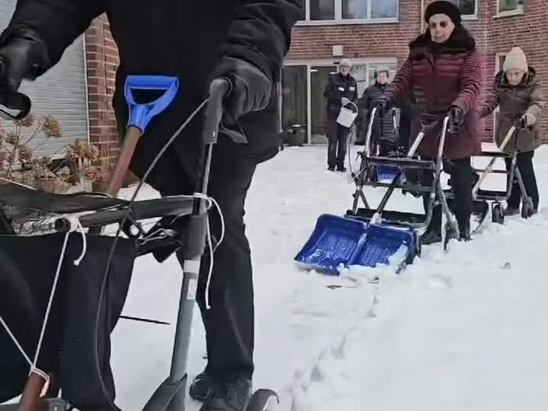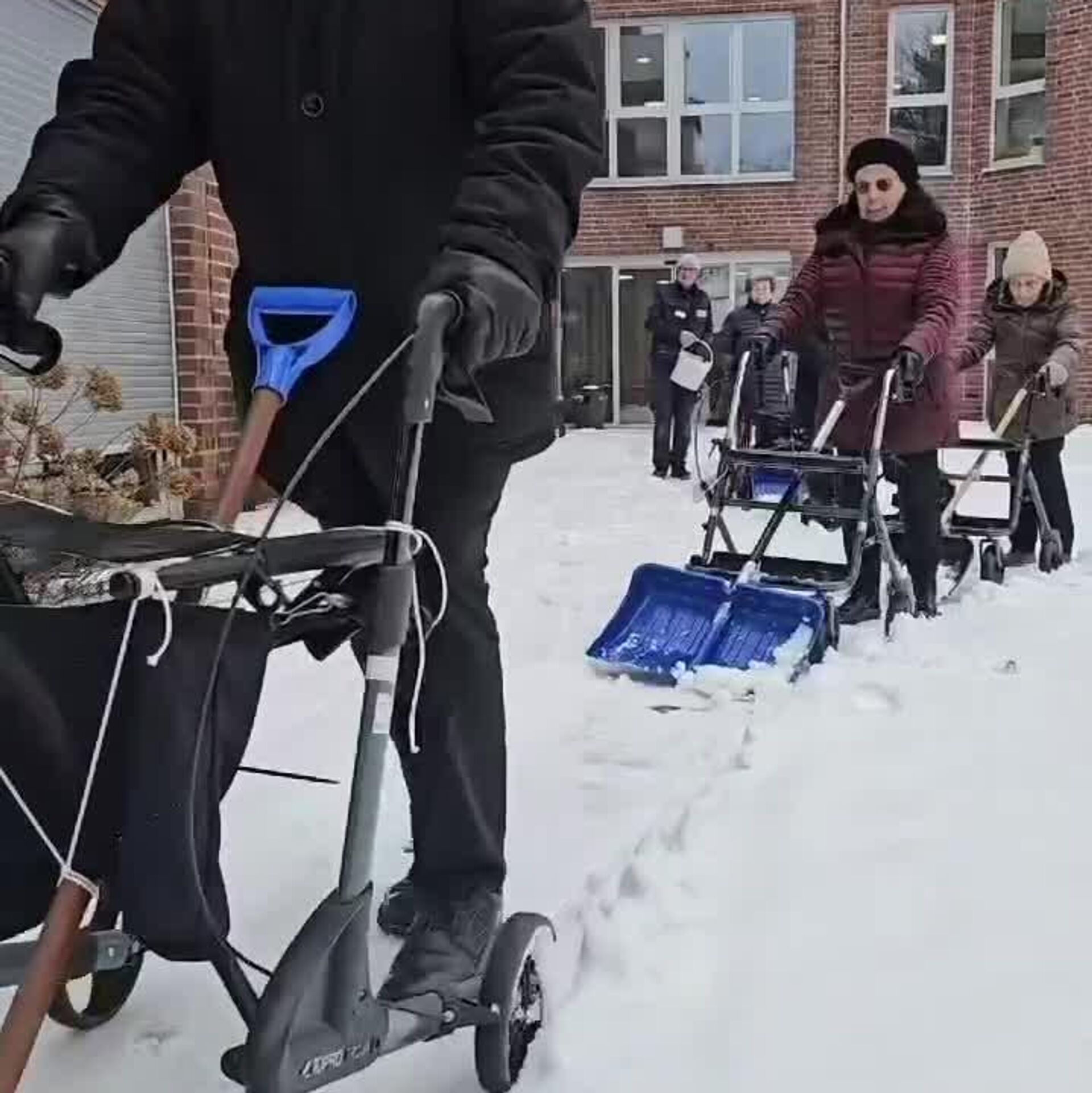 پس از بارش شدید برف، ساکنان خانه سالمندان هایدبلوت بیکار ننشستهاند و حتی با کمک افراد پیاده، برف را از حیاط خلوت پاک میکنند.