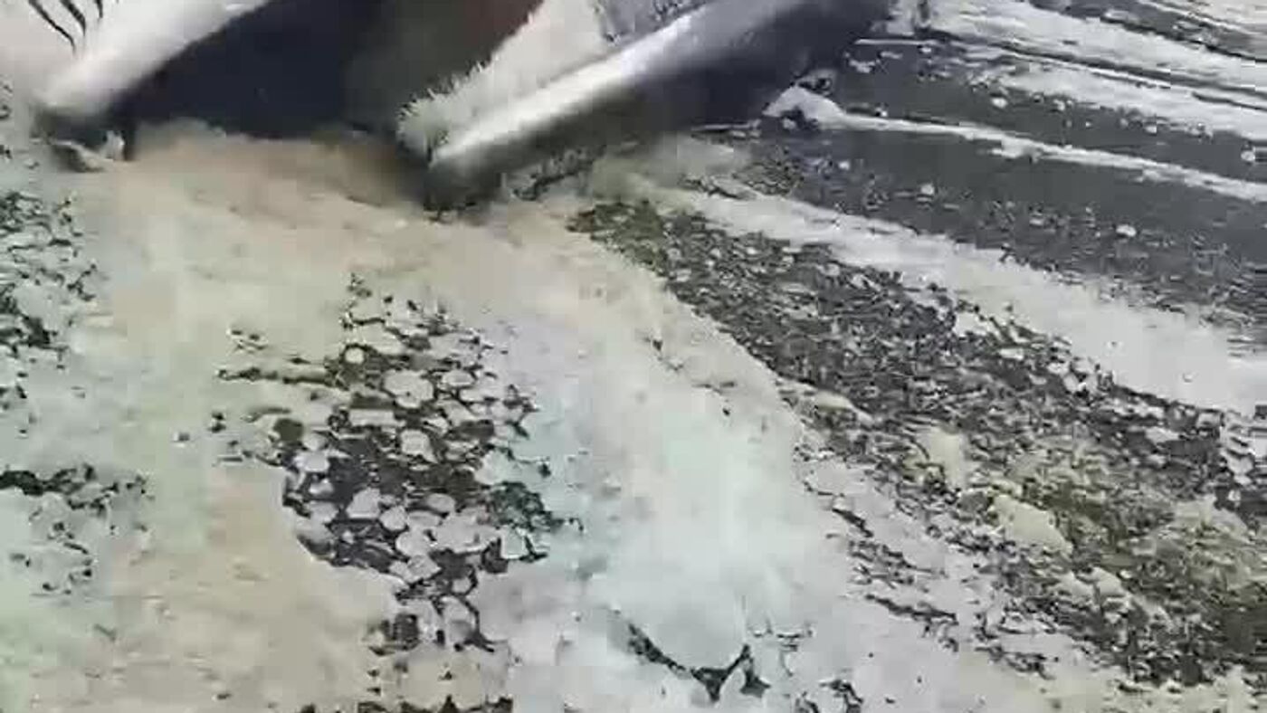 ▫ساکنان محلی این غول دریایی را روز شنبه در نزدیکی روستای اکتیابرسکی کشف کردند. به گفته مشترکی که این ویدیو را ارسال کرده، طول این نهنگ تقریباً 17 متر است. به نظر میرسد که بسیار جوان بوده است.
