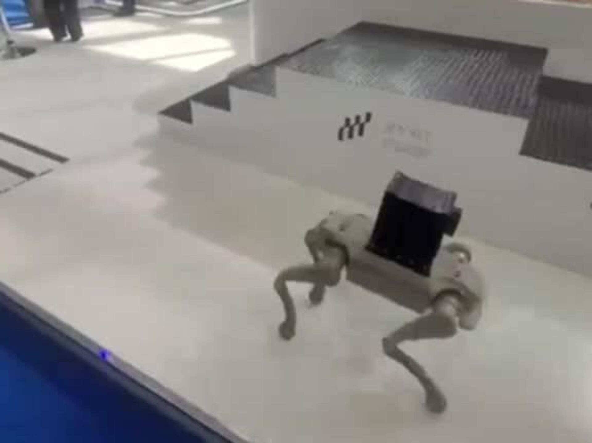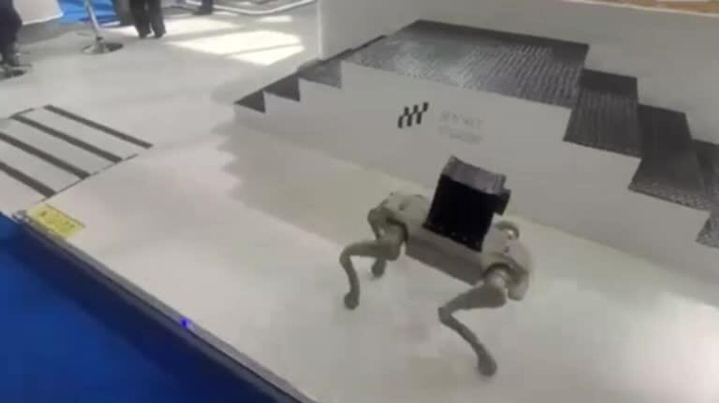یک سگ رباتیک در نمایشگاه جهانی دفاع در عربستان سعودی پشتک وارو زد