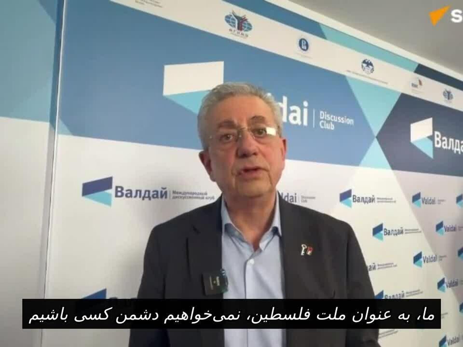 مصطفی برغوثی، دبیرکل جنبش ابتکار ملی فلسطین، در حاشیه کنفرانس خاورمیانه باشگاه گفتگوی والدای، نظرات خود را در مورد تلاشها برای تقویت جاذبه آرمان فلسطین در سایر کشورها در میان نهاد.