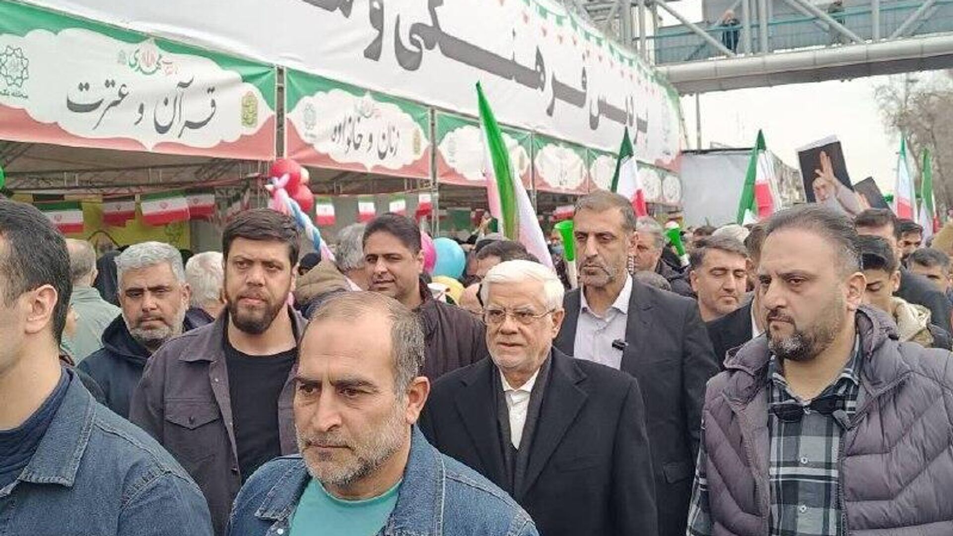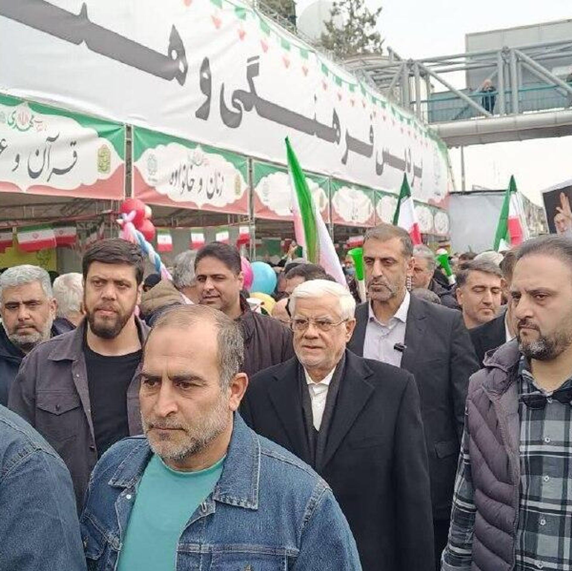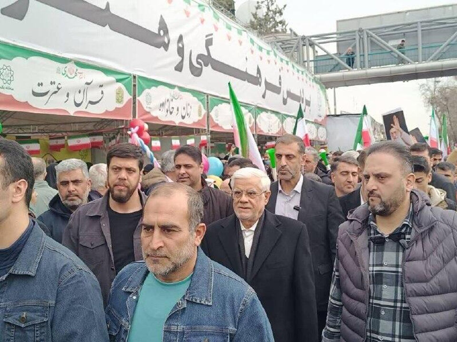 11:15 11.02.2026 (بروز رسانی شده: 11:20 11.02.2026) حضور محمدرضا عارف، معاون اول رییس جمهور ایران و حضور امین حسین رحیمی وزیر دادگستری در راهپیمایی 22 بهمن