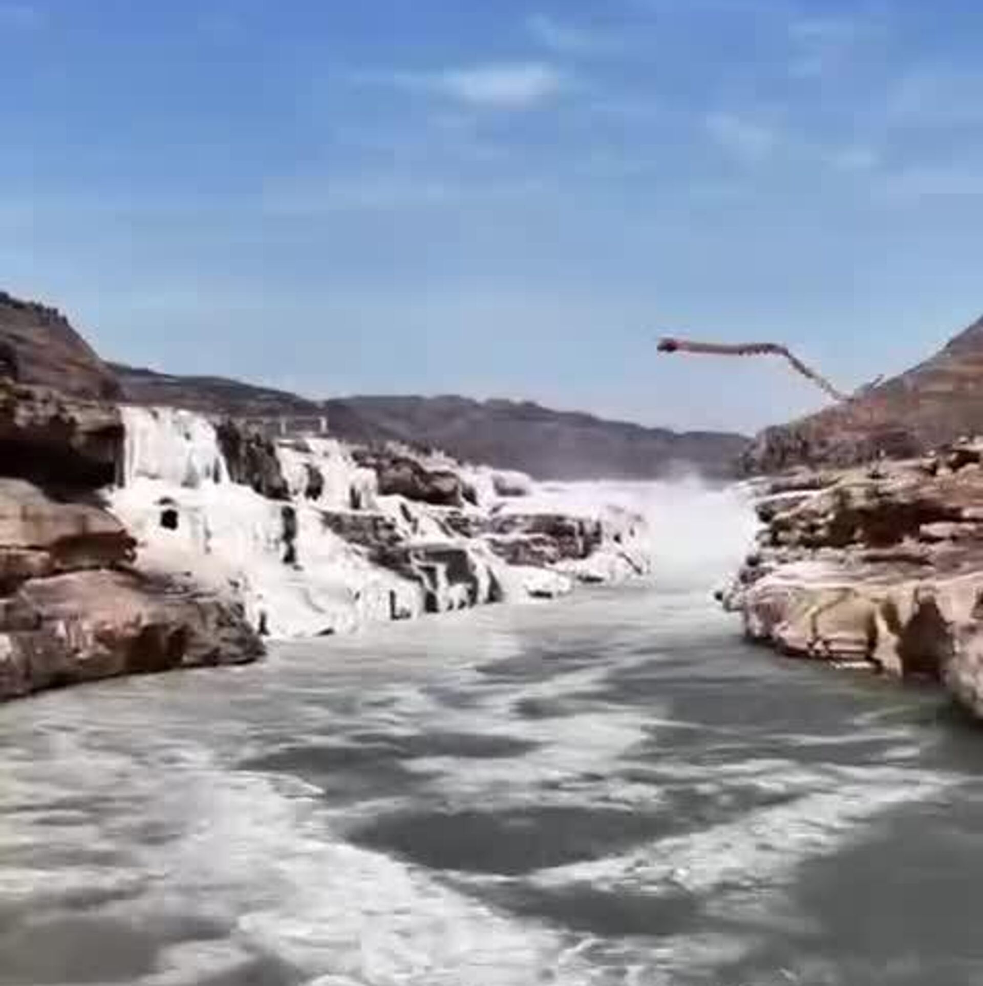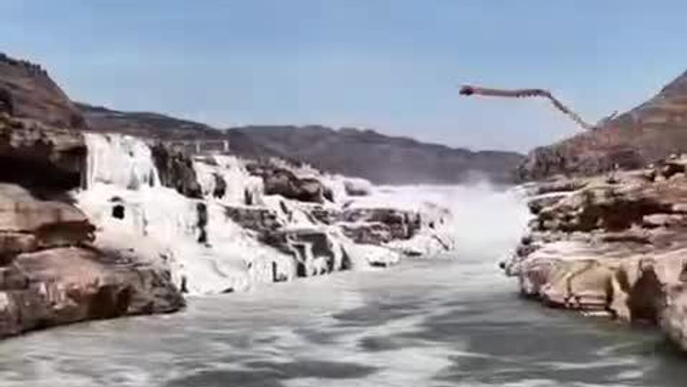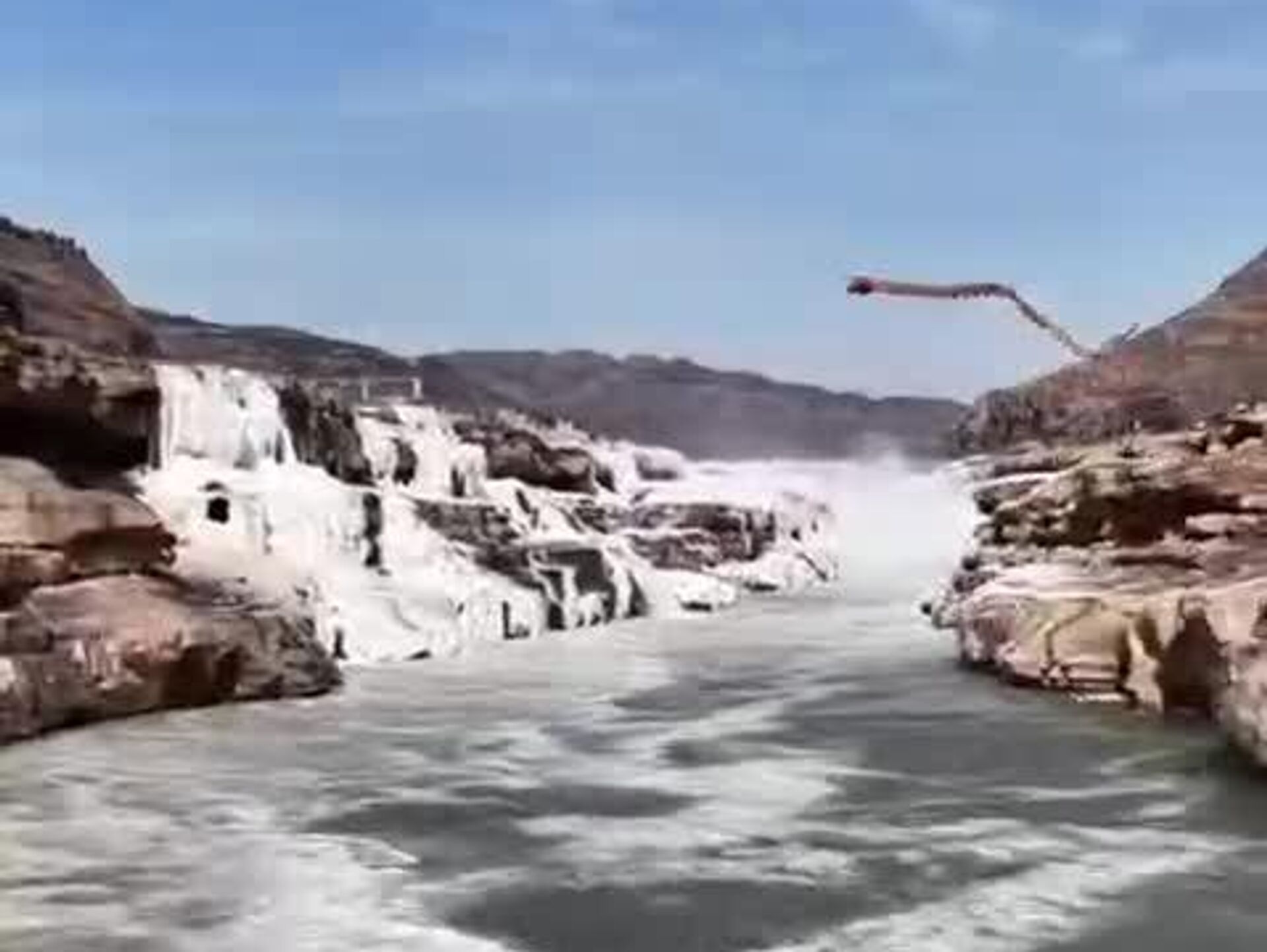 این نمایش بر فراز آبشار هوکو در رودخانه زرد چین برگزار شد.
