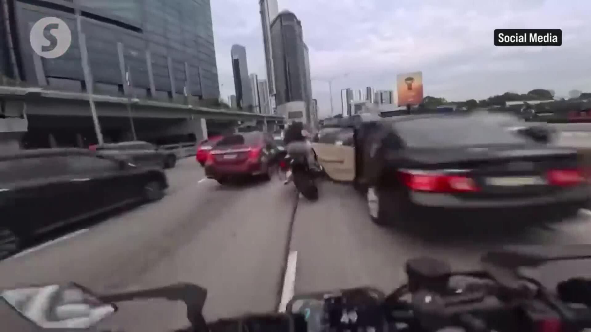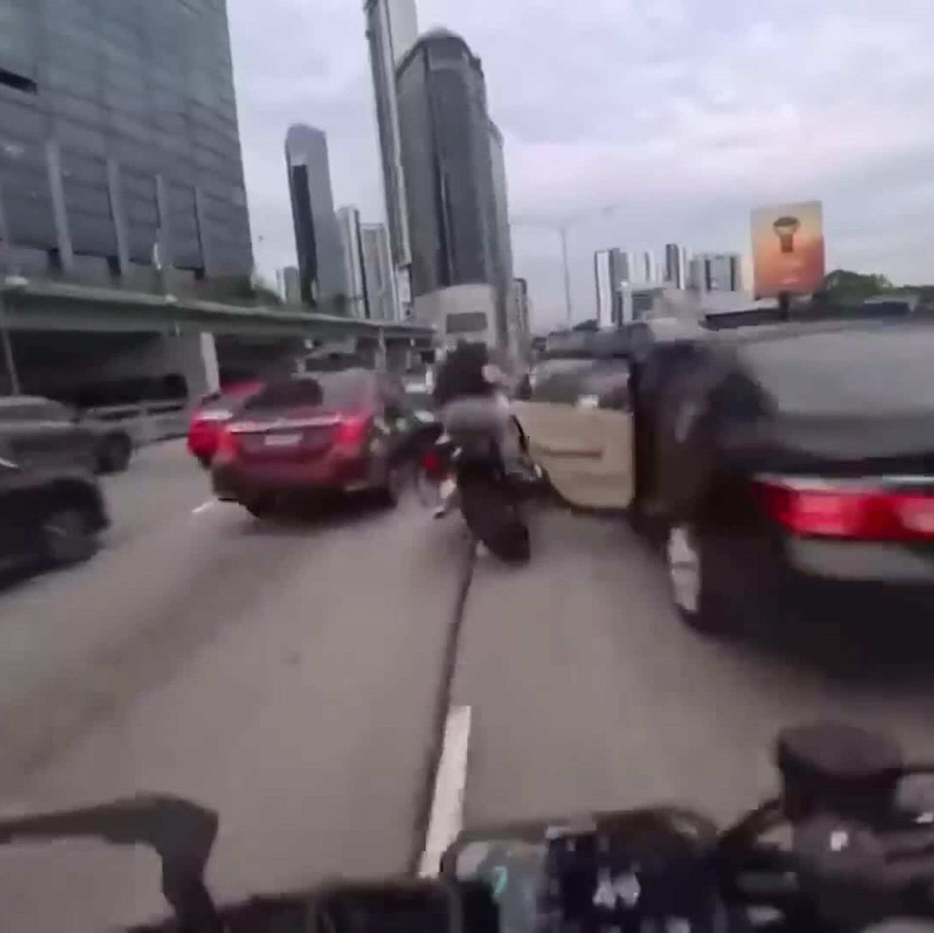 یک کودک دو ساله در مالزی در ماشین را باز کرد و باعث آسیب دیدن موتورسوار شد