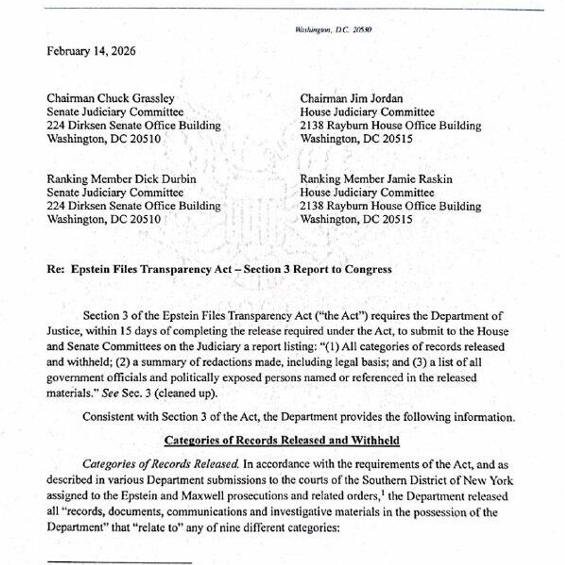 وزارت دادگستری در نامهای به رهبران کنگره که توسط فاکس نیوز دیجیتال به دست آمده است، اعلام کرد که تمام «سوابق، اسناد، ارتباطات و مواد تحقیقاتی موجود در اختیار وزارتخانه» را که مربوط به این پرونده است، منتشر کرده است.