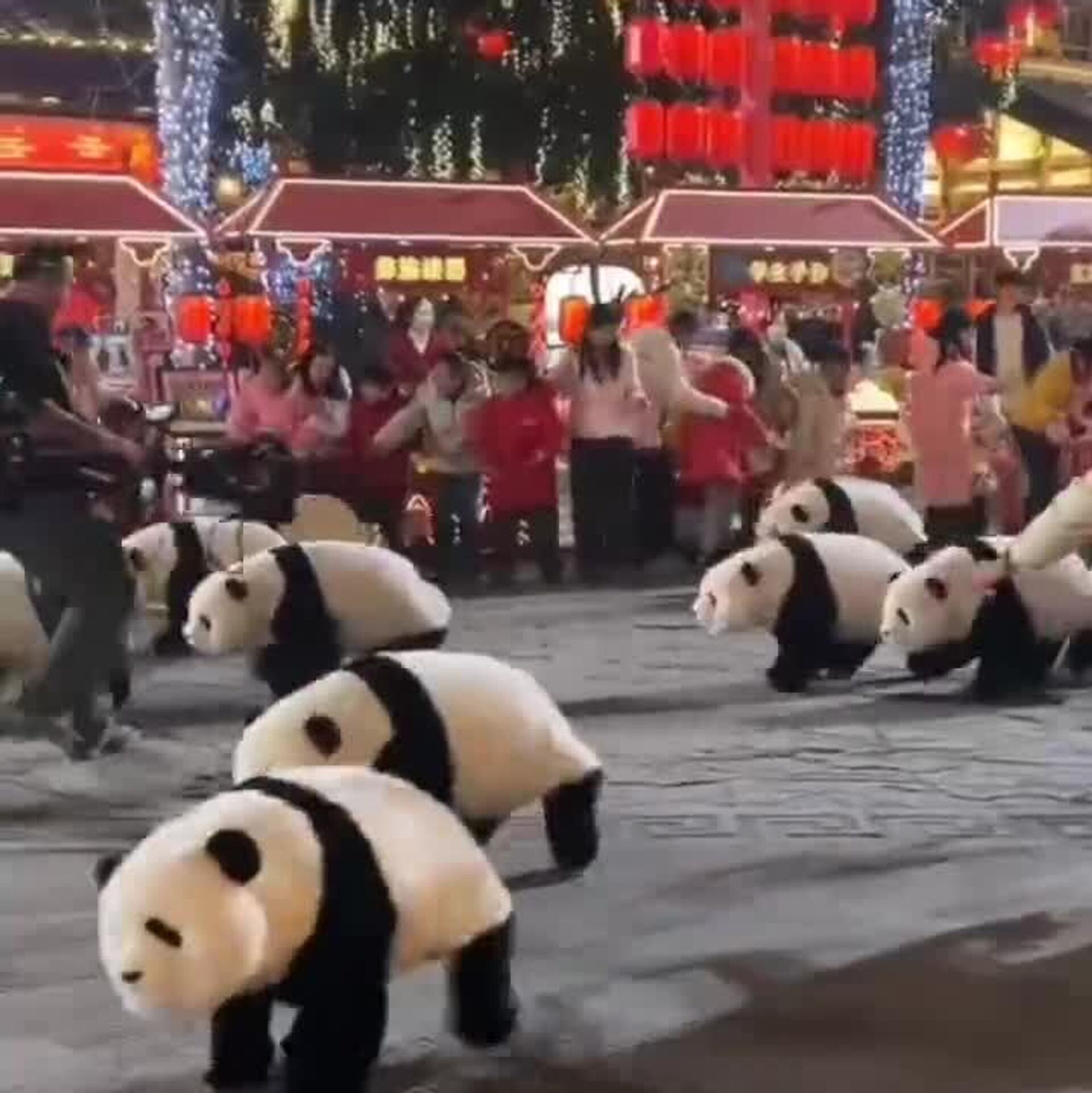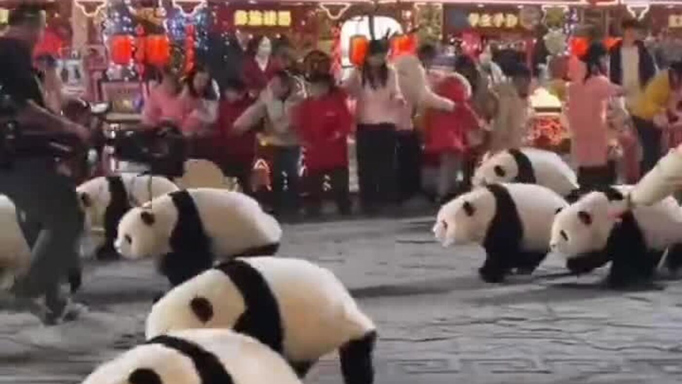 رقاصی و اجرای حرکات موزون ربات های پاندا به مناسبت جشنهای سال نو چینی
