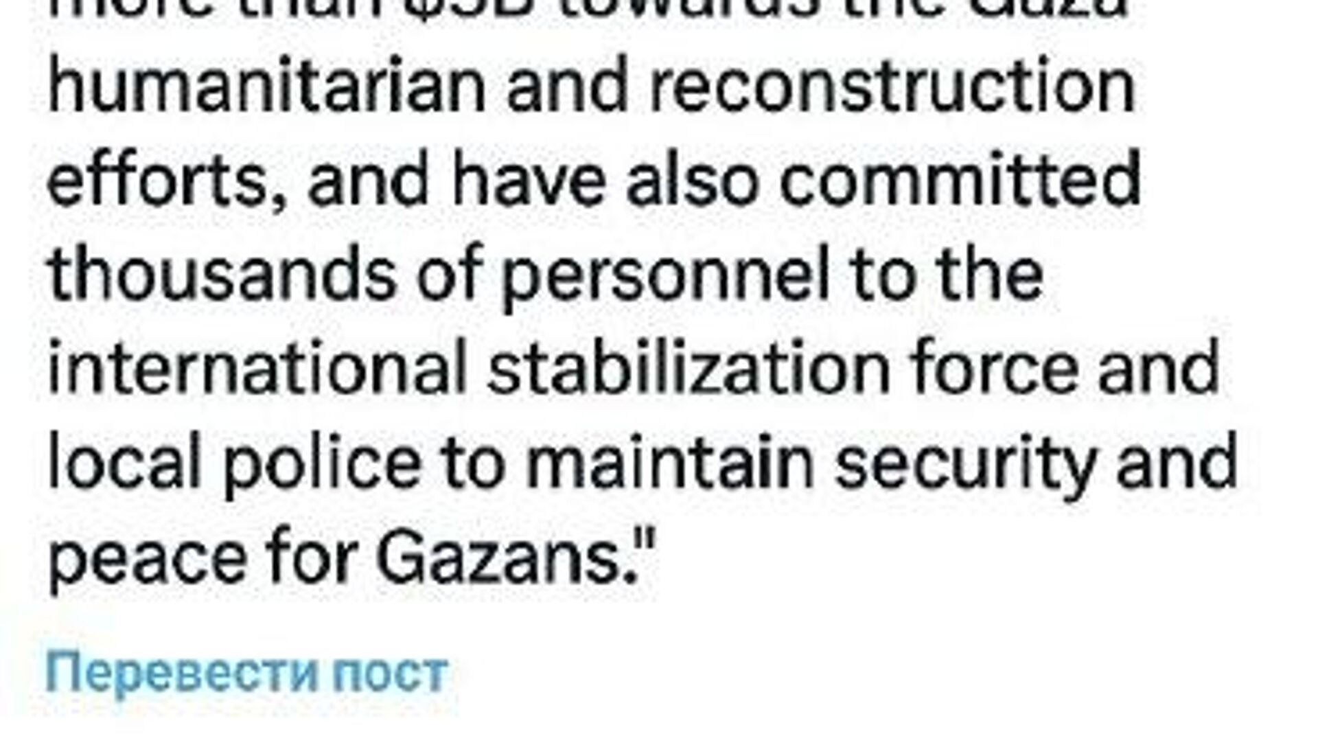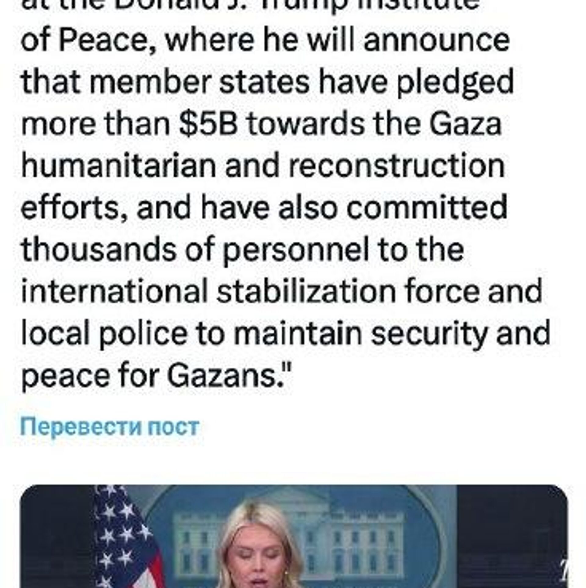 اضافه می شود وی در آنجا اعلام خواهد کرد که کشورهای عضو تخصیص بیش از 5 میلیارد دلار برای بازسازی و تلاشهای بشردوستانه در غزه را متعهد شدهاند.