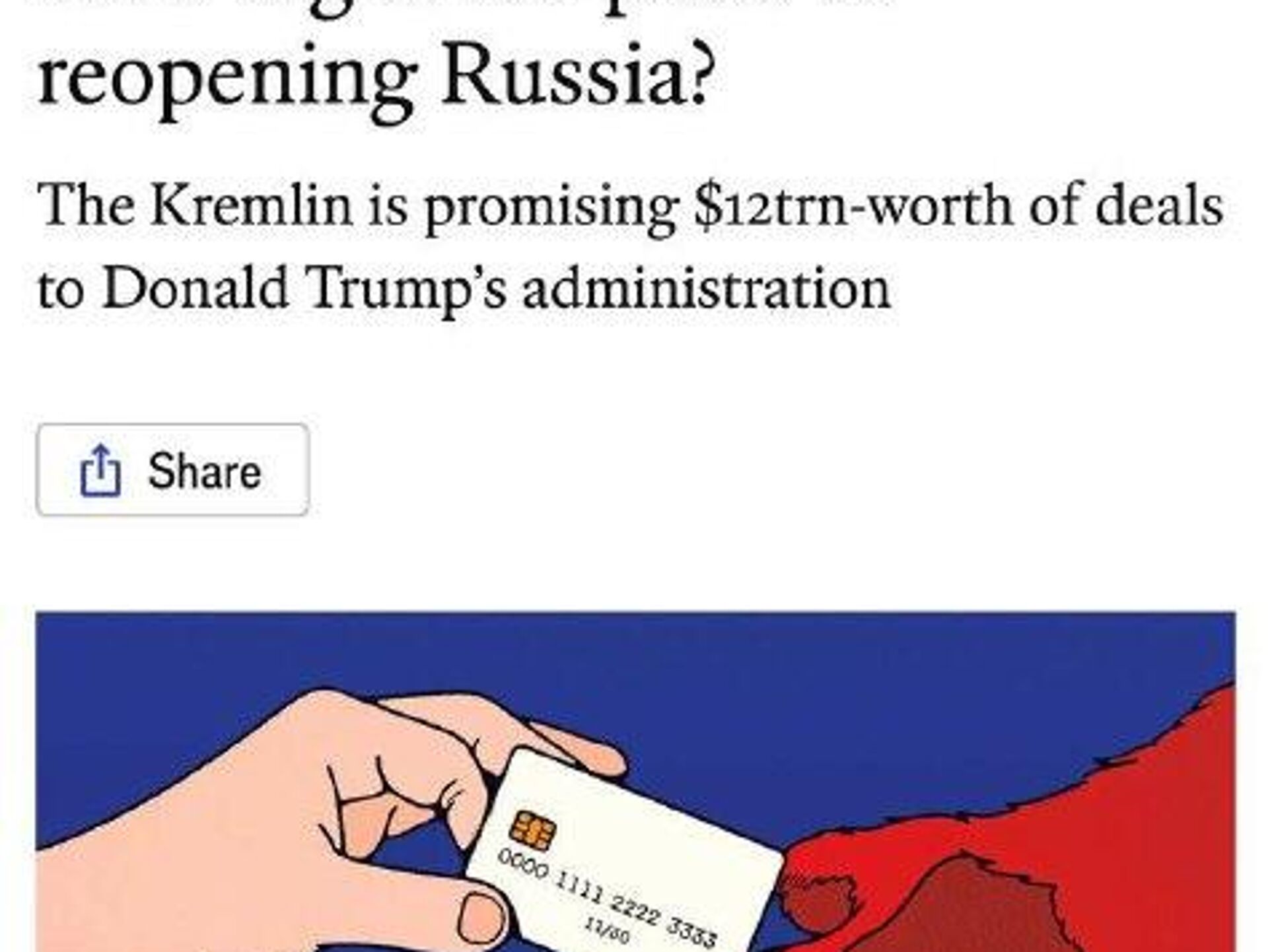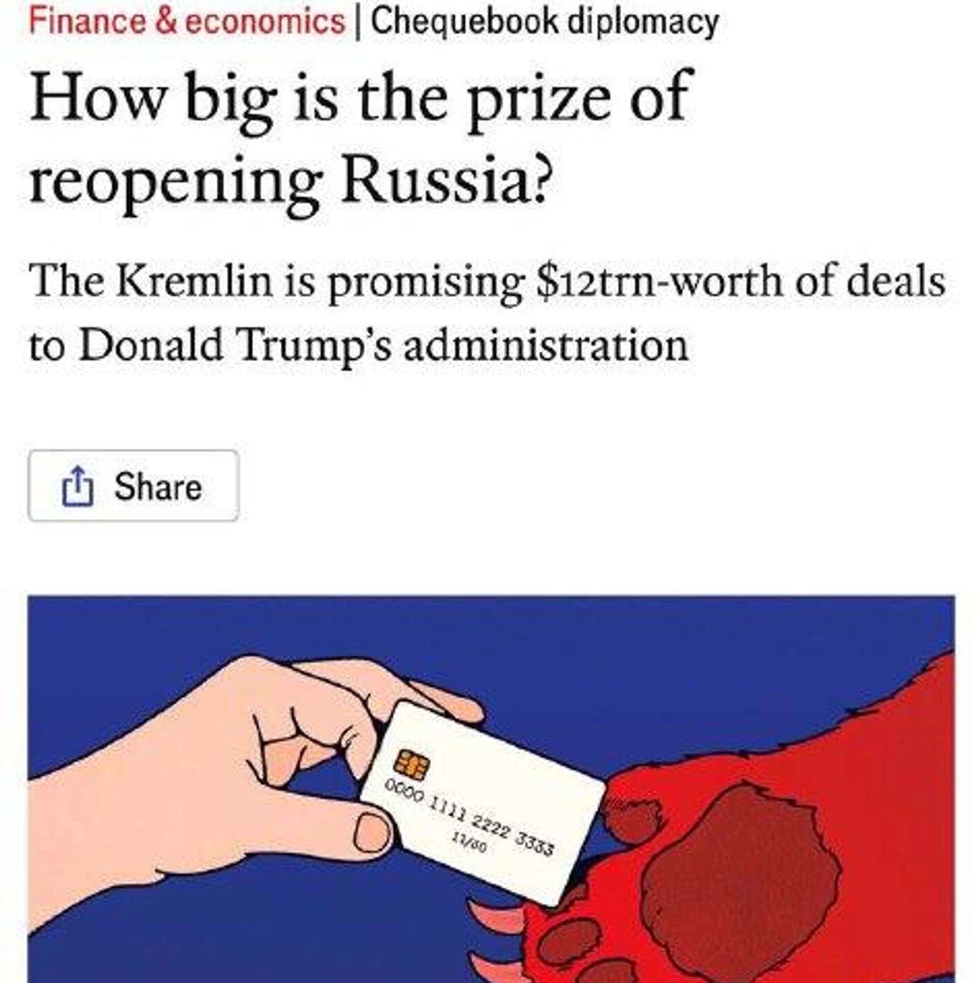 اکونومیست یک داستان جعلی منتشر کرد که ادعا میکرد روسیه 12 تریلیون دلار پروژه به آمریکا «در ازای» لغو تحریمها پیشنهاد میدهد. این دروغ است.