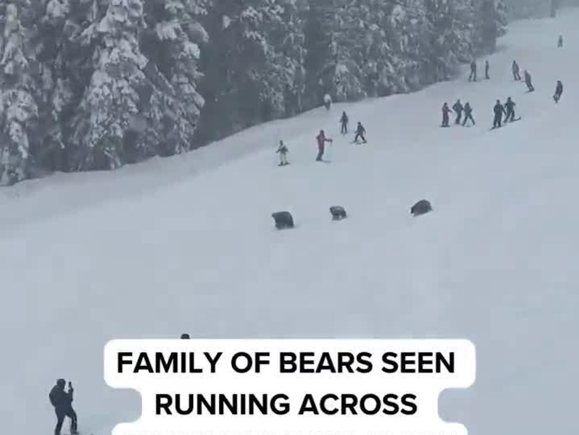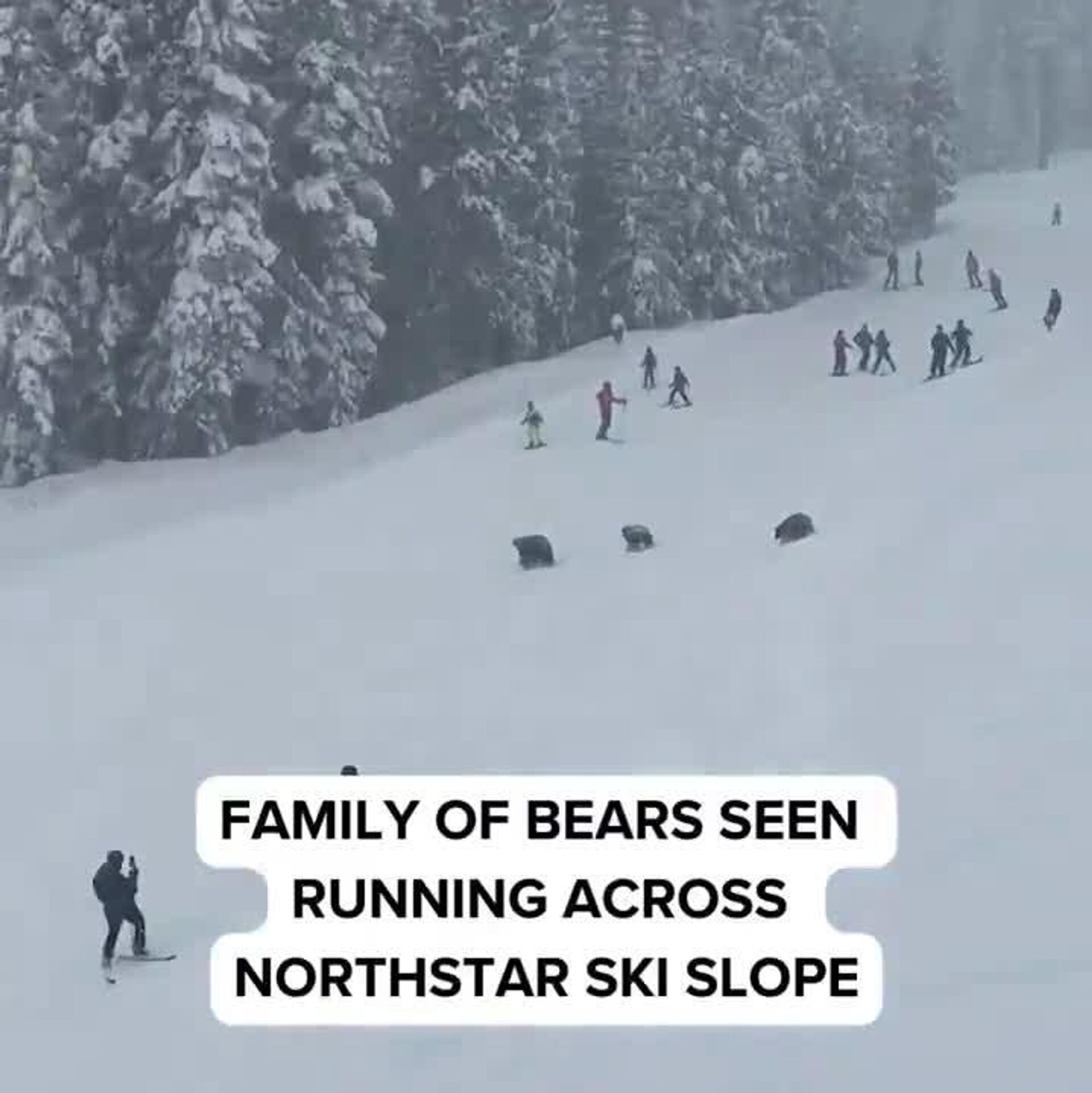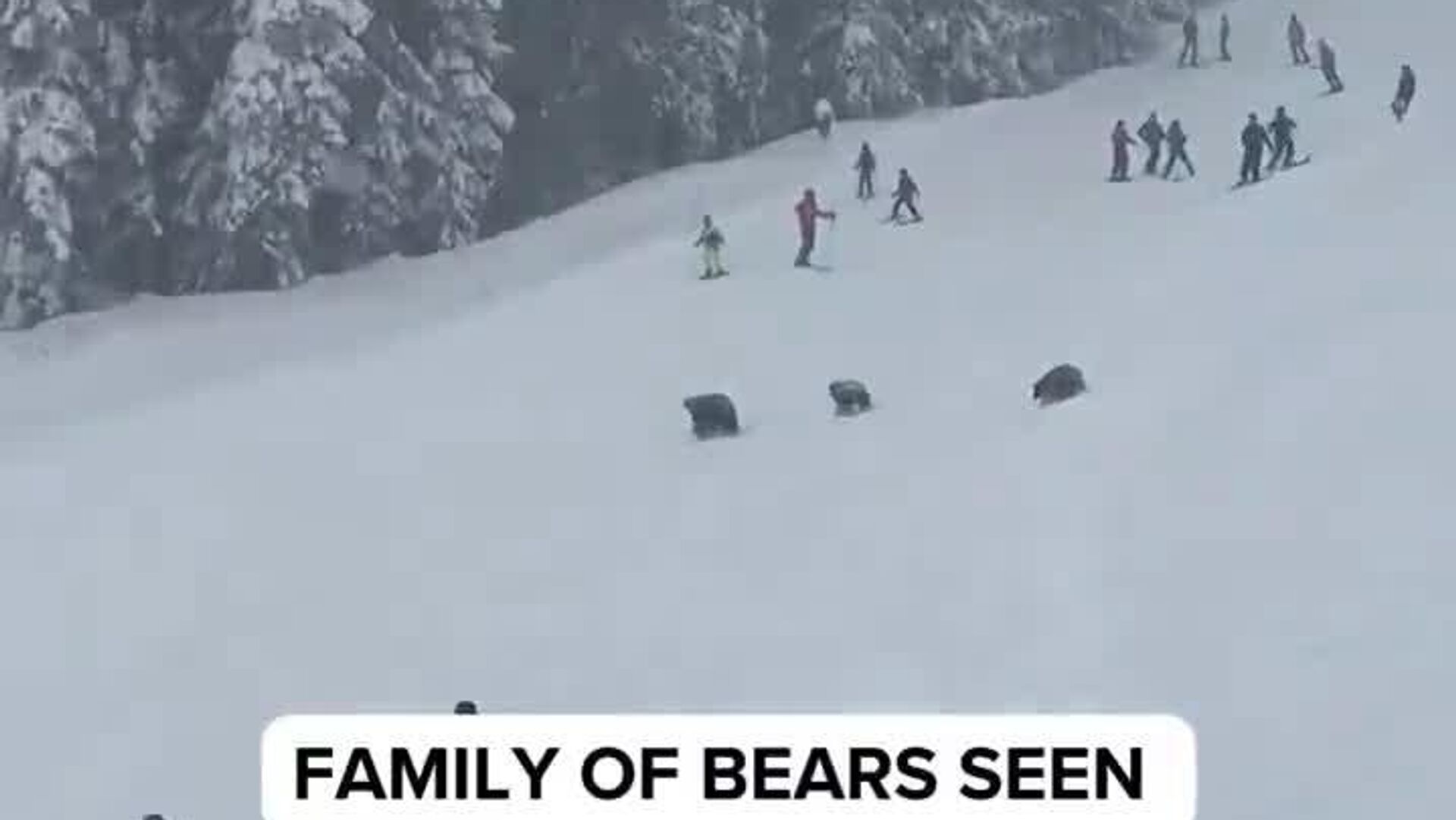 خرس مادر و دو تولهاش به سرعت از پیست اسکی عبور کردند و هیچکس آسیب ندید. با قضاوت بر اساس ویدیو، خرسها علاقهی کمی به خود اسکیبازان نشان دادند.