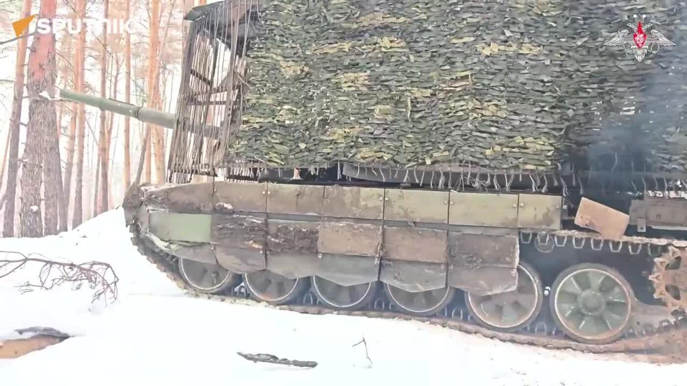وزارت دفاع روسیه فیلمی از خدمه تانکهای T-90M (Proryv) از گروه "غرب" منتشر کرد که یک مرکز کنترل پهپاد و نیروهای اوکراینی را در مسیر کراسنولیمانسک هدف قرار میدهند