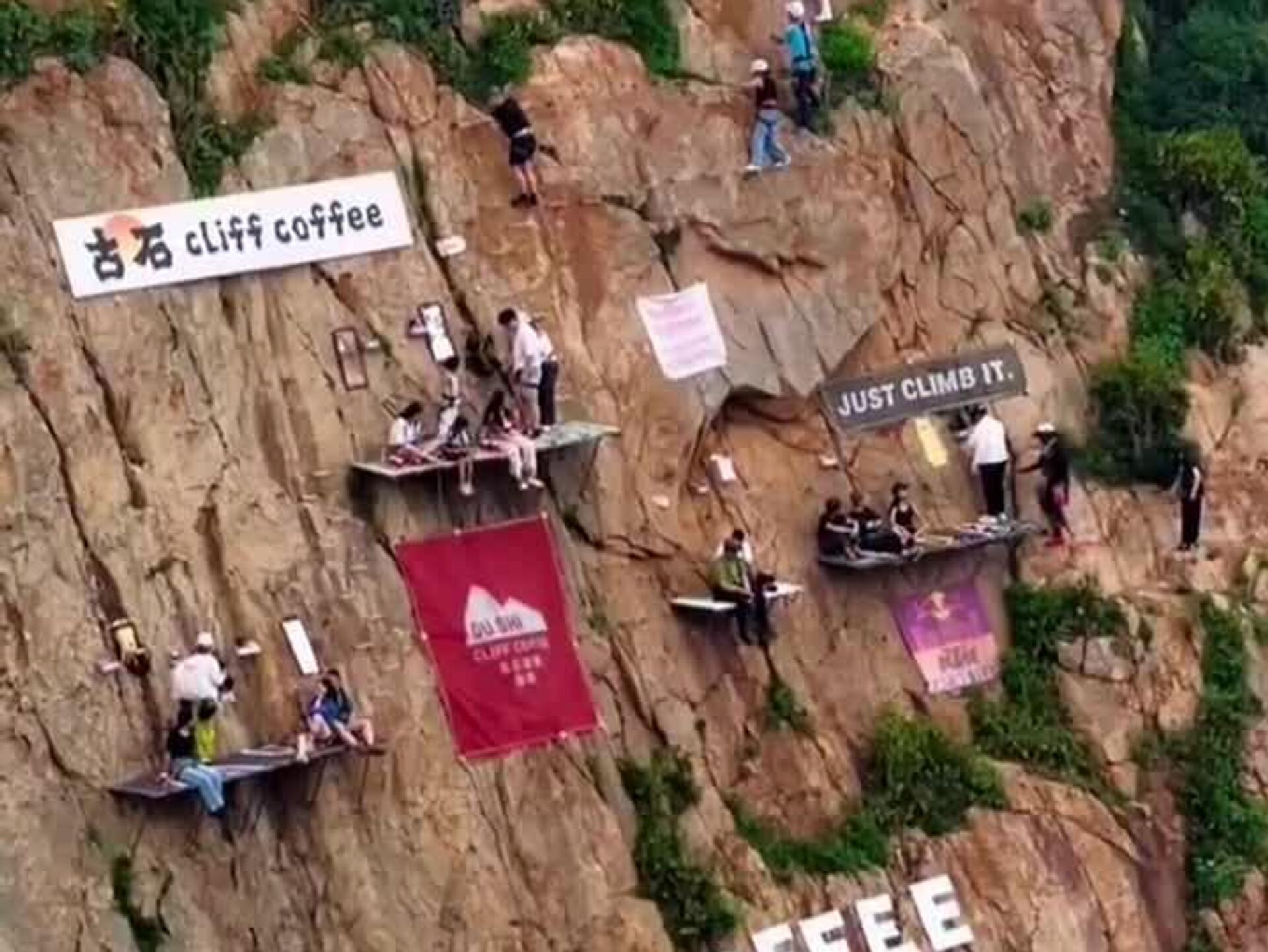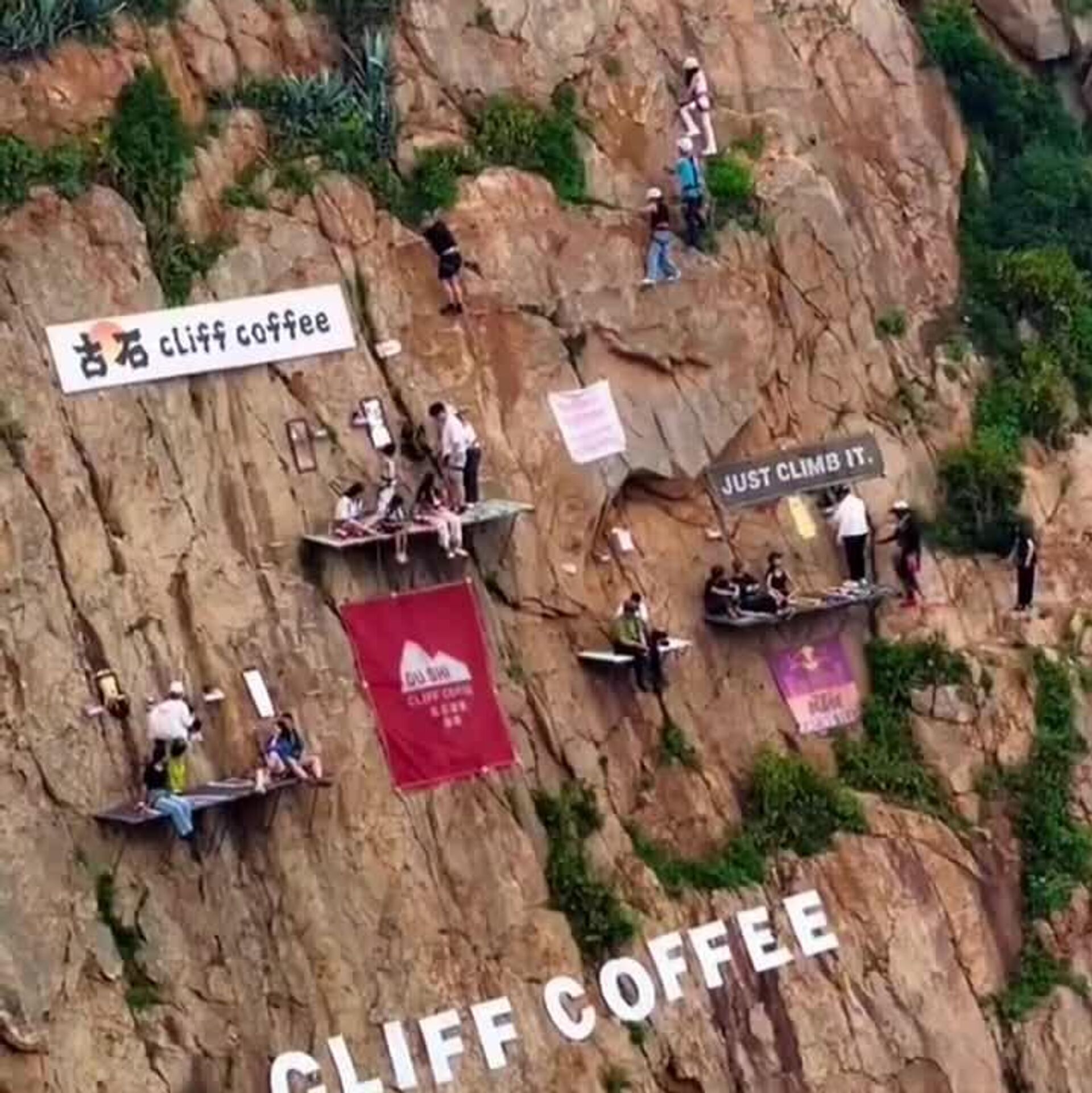 یک کافه بر شیب صخره در طول تعطیلات سال نو در رسانههای اجتماعی چین به یک ترند تبدیل شد
