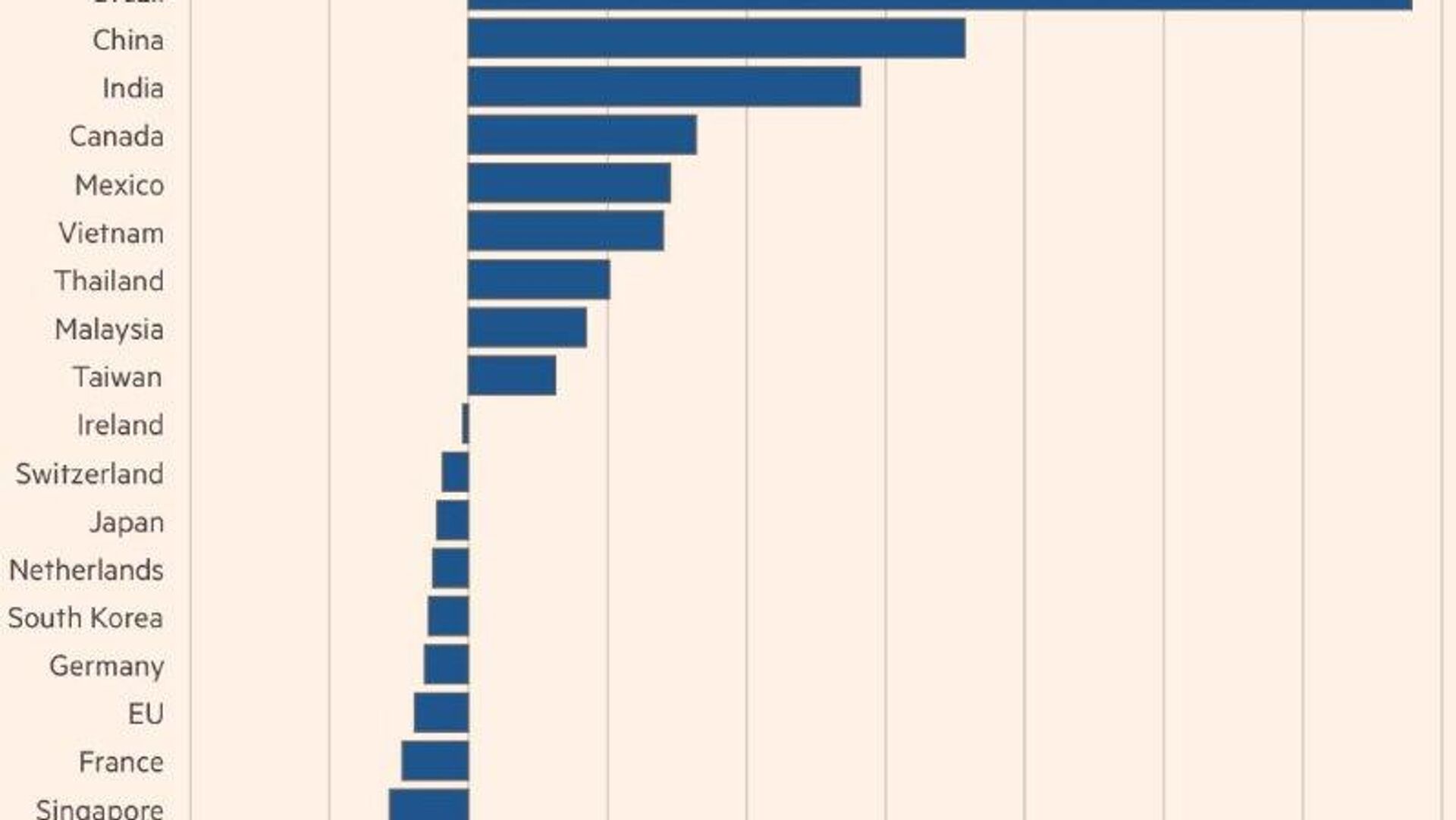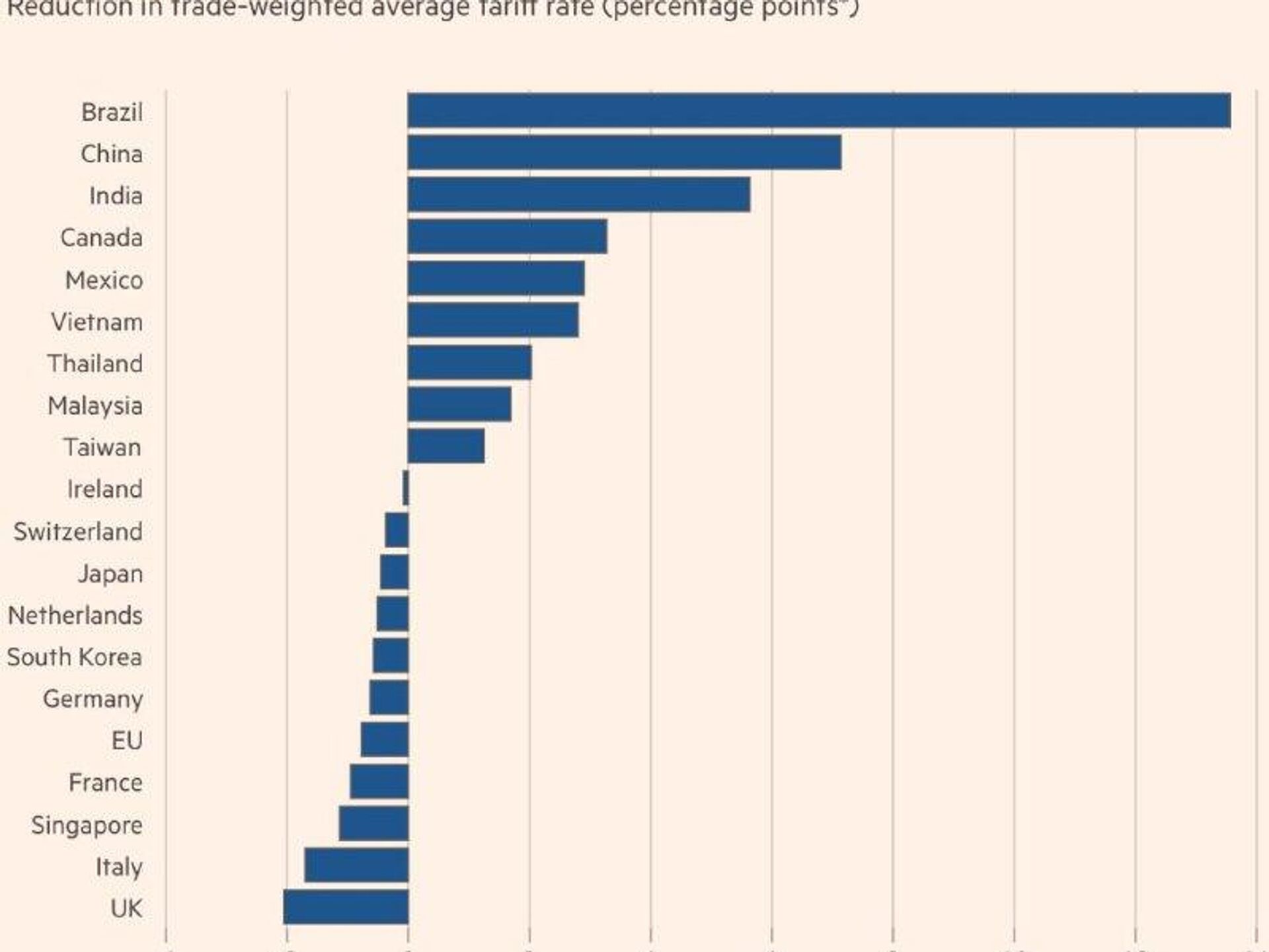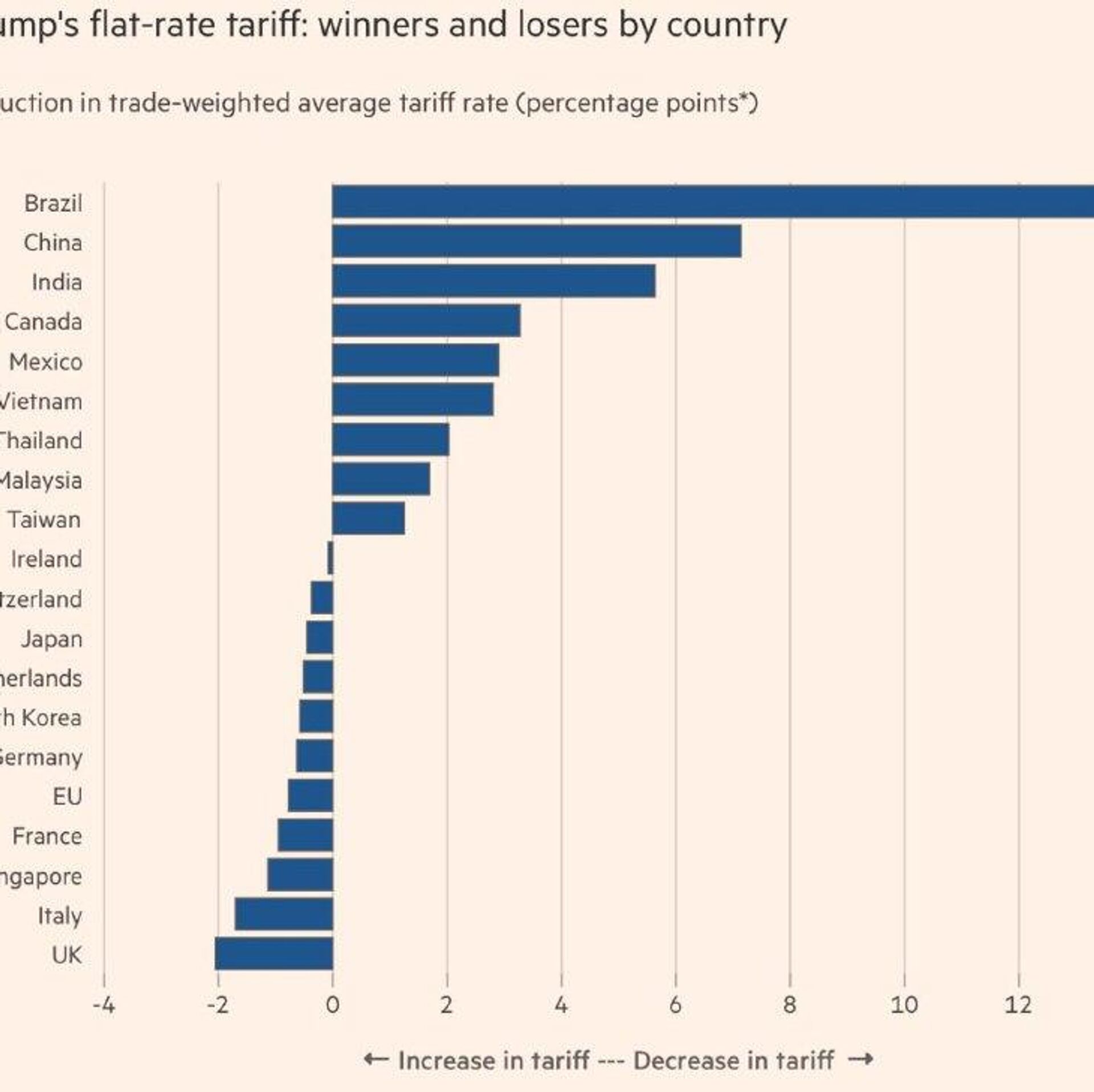 در عین حال، تعرفهها برای برخی کشورهای اتحادیه اروپا، بیش از همه برای بریتانیا، افزایش خواهد یافت.