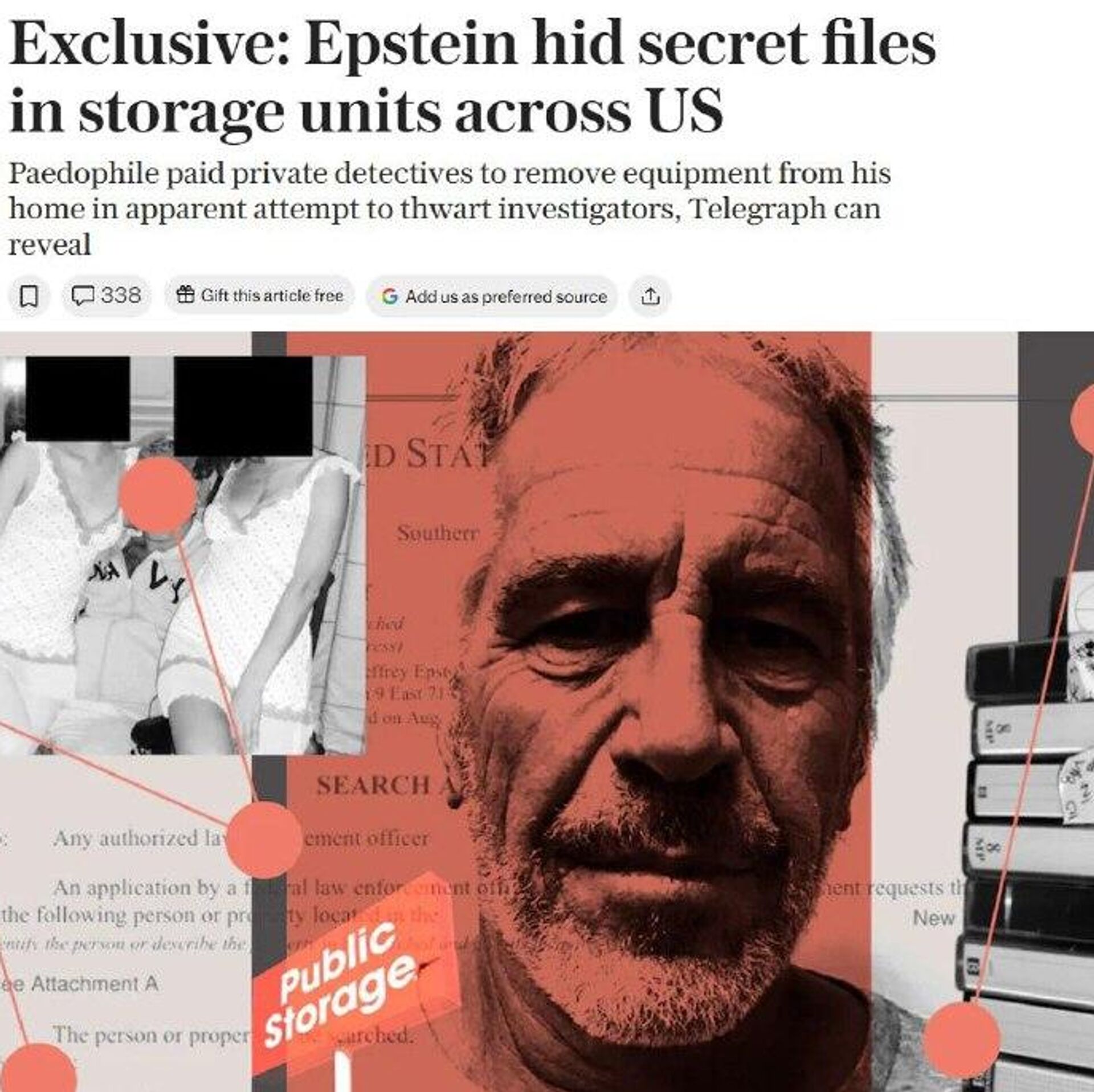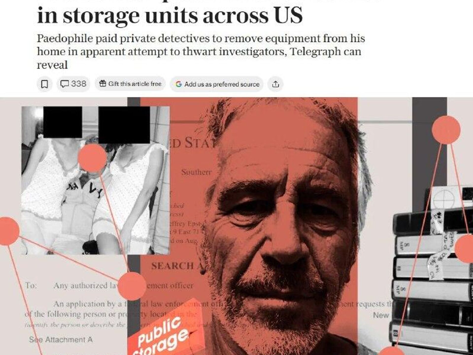 رسانه: اپستین کامپیوترها و عکسها را در انبارهای مخفی در سراسر ایالات متحده پنهان کرده بود