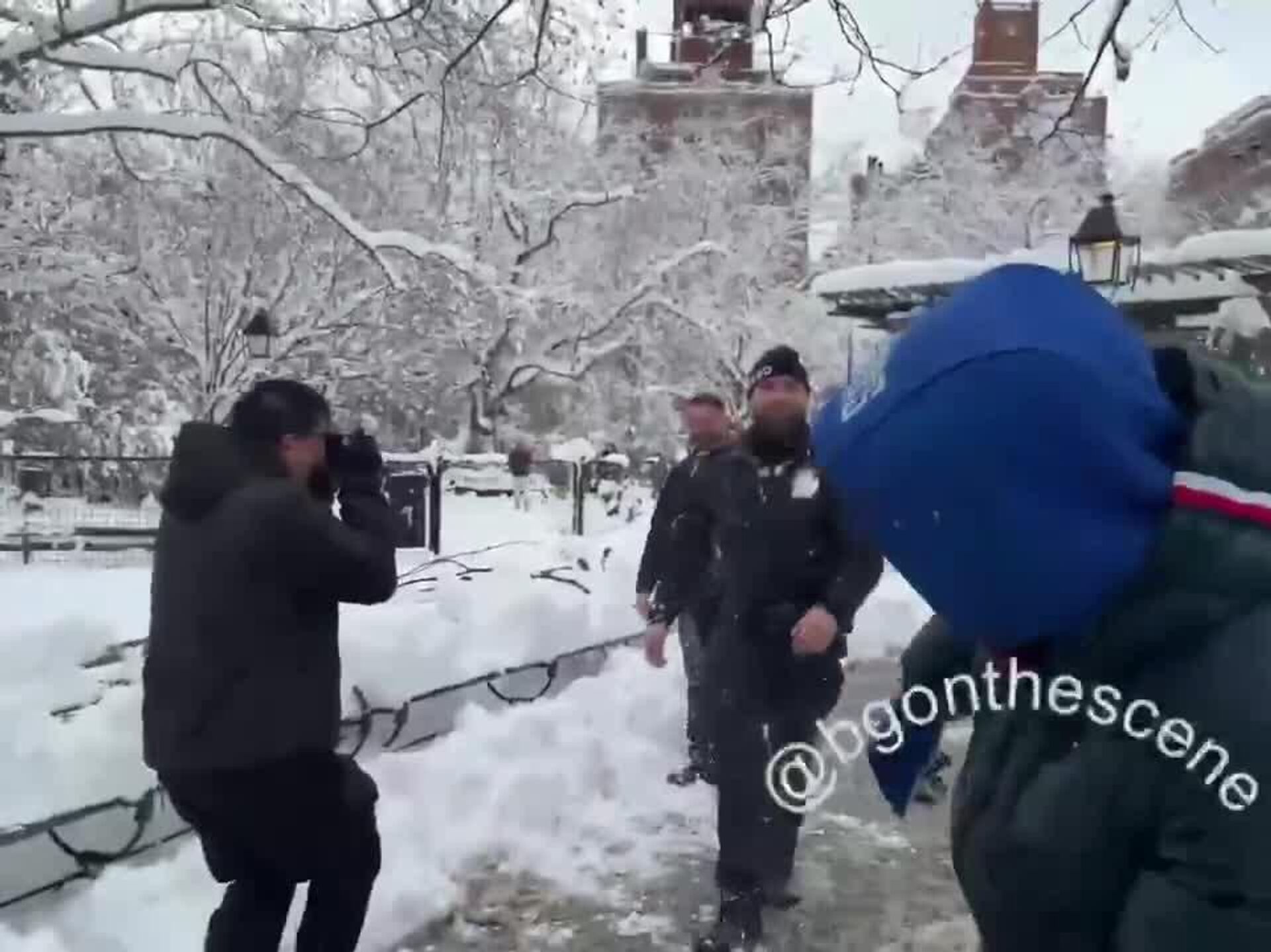 یک مرد 27 ساله در شهر نیویورک به ظن پرتاب گلوله برفی به سمت مأموران پلیس در پارک میدان واشنگتن دستگیر شد