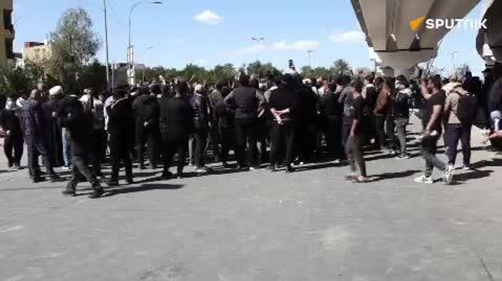 تظاهرات در مقابل سفارت آمریکا در منطقه سبز بغداد، پس از درگیری بین نیروهای امنیتی و معترضان در حمایت از ایران ما را در سایت و تلگرام اسپوتنیک دنبال کنید Sputnik Iran | Telegram