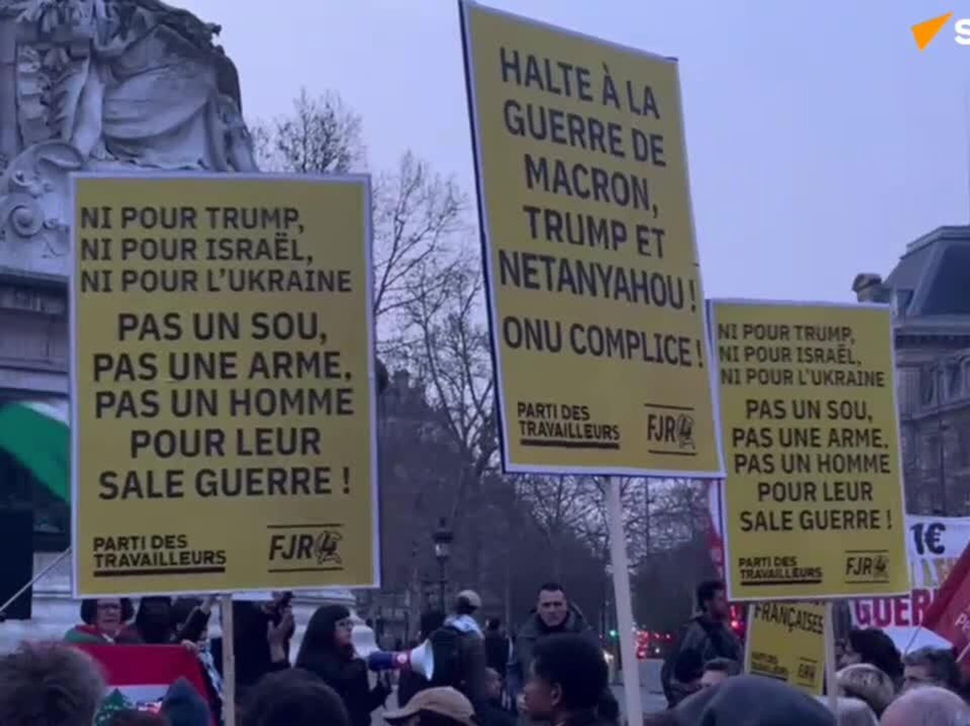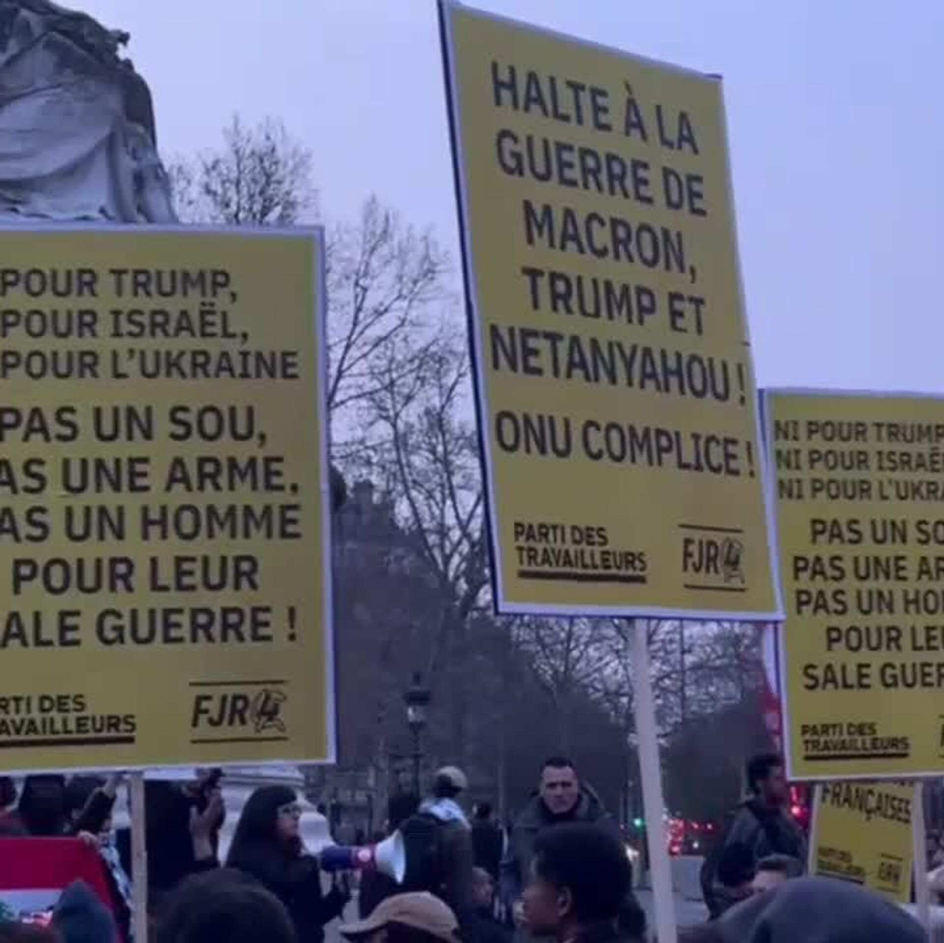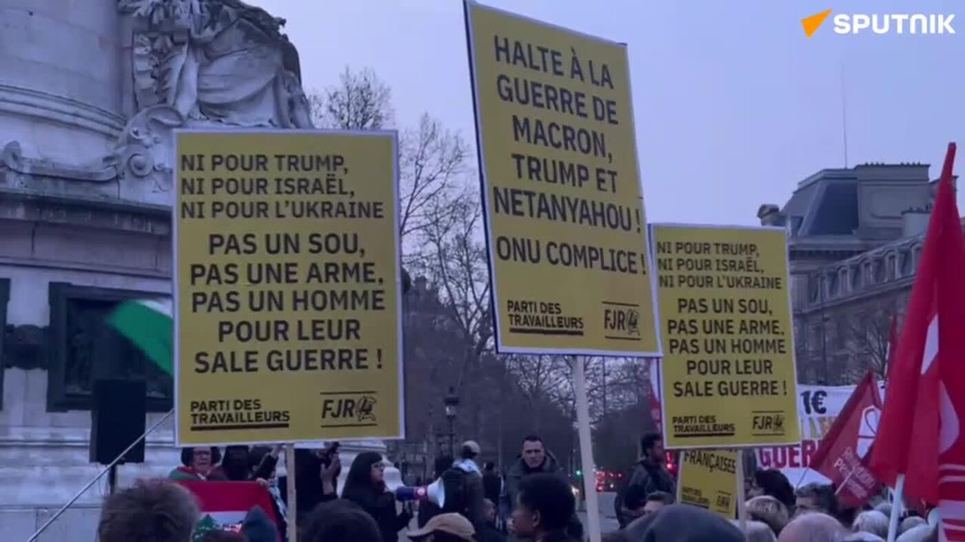 صدها معترض در پاریس تجمع کردند تا کمپین بمباران اسرائیل و ایالات متحده علیه جمهوری اسلامی ایران را محکوم کنند. آنها از مقامات فرانسوی خواستند که به حمایت خود از واشنگتن و تلآویو پایان دهند.