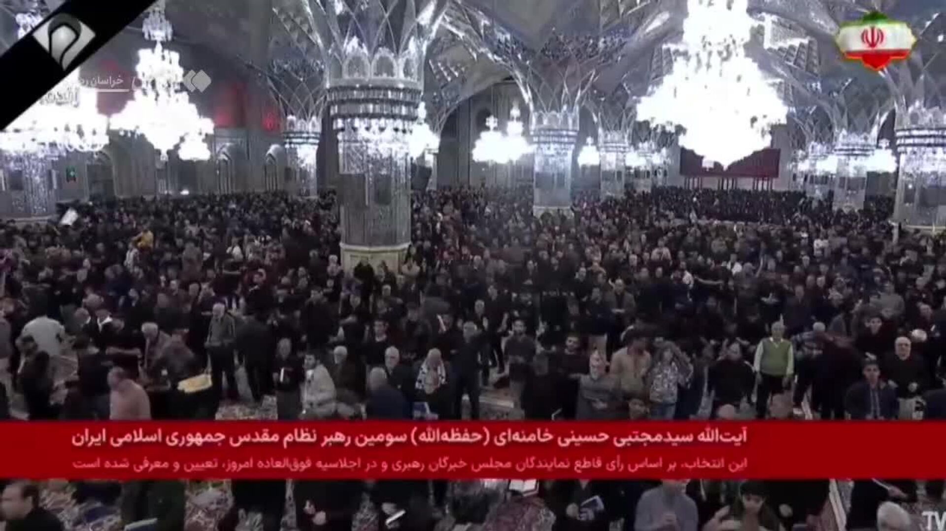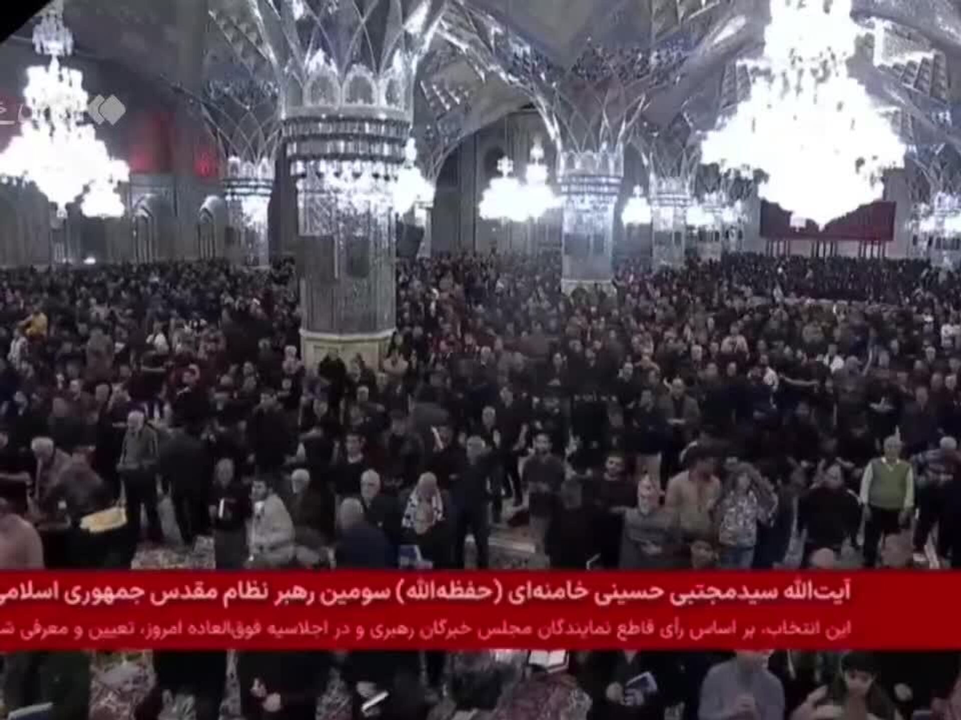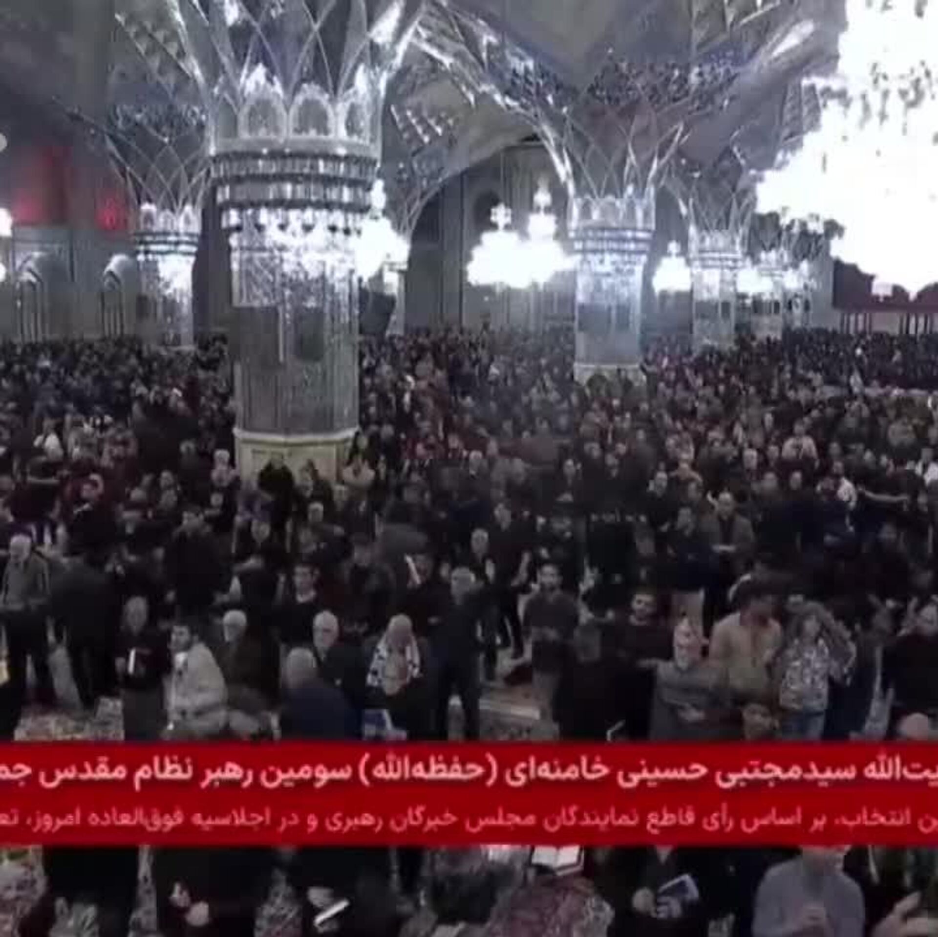 01:28 09.03.2026 (بروز رسانی شده: 01:30 09.03.2026) لحظهٔ اعلام کردن نام رهبر انقلاب اسلامی در حرم امام رضا