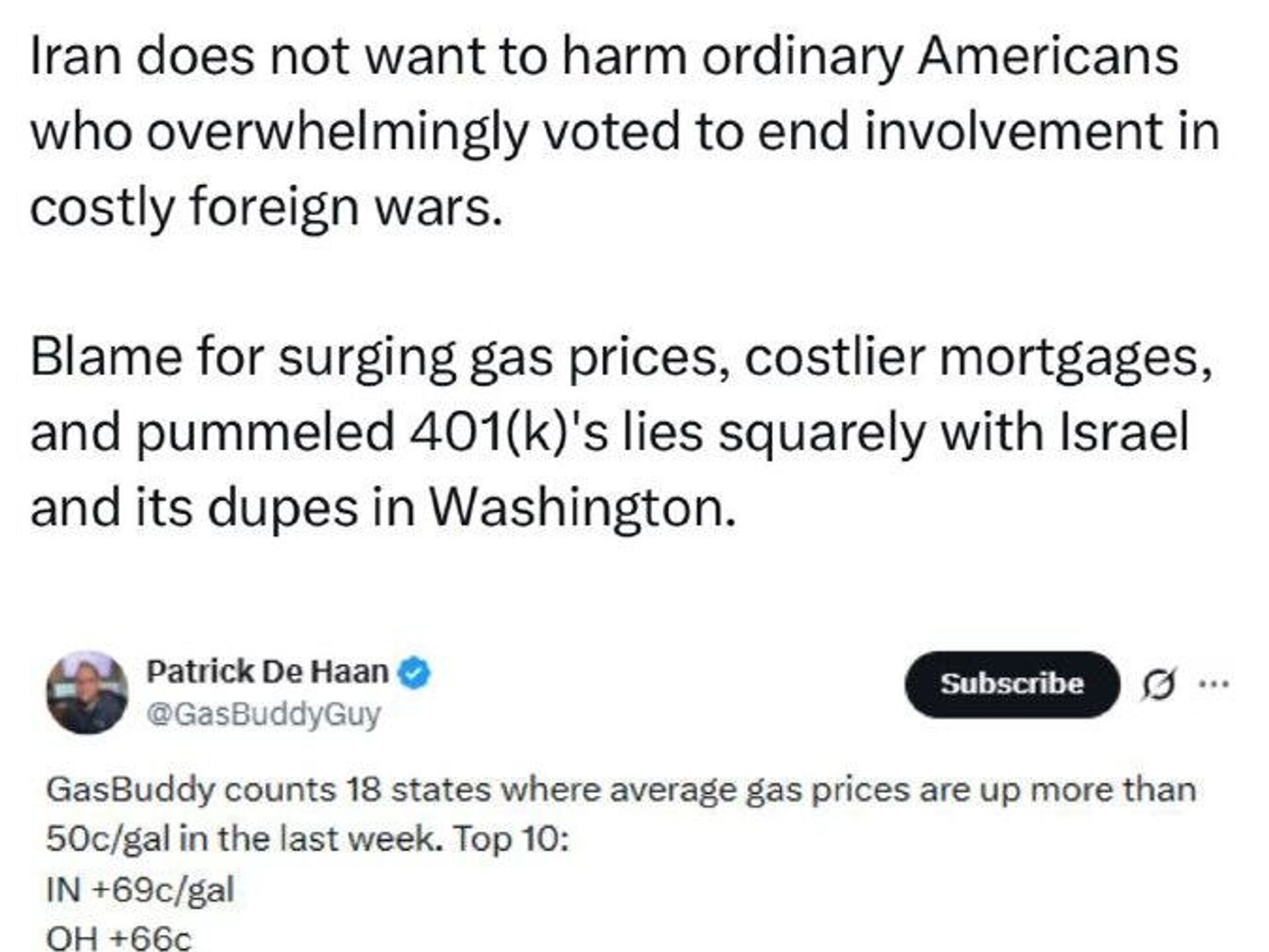 مسئولیت افزایش شدید قیمت بنزین، گرانتر شدن وامهای مسکن و افت سنگین حسابهای بازنشستگی مستقیماً بر عهده اسرائیل و دنبالهروهای آن در واشنگتن است.