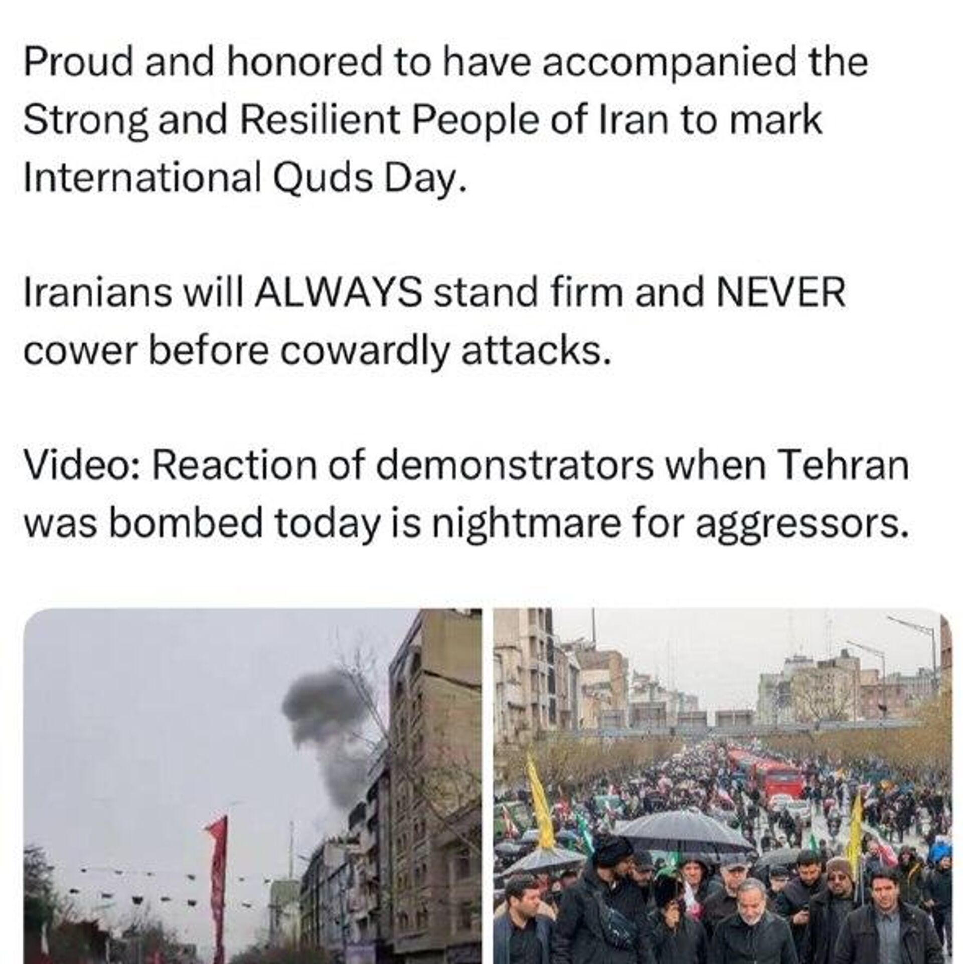 با غرور و افتخار در کنار مردم قوی و مقاوم ایران در راهپیمایی روز قدس حضور پیدا کردم.