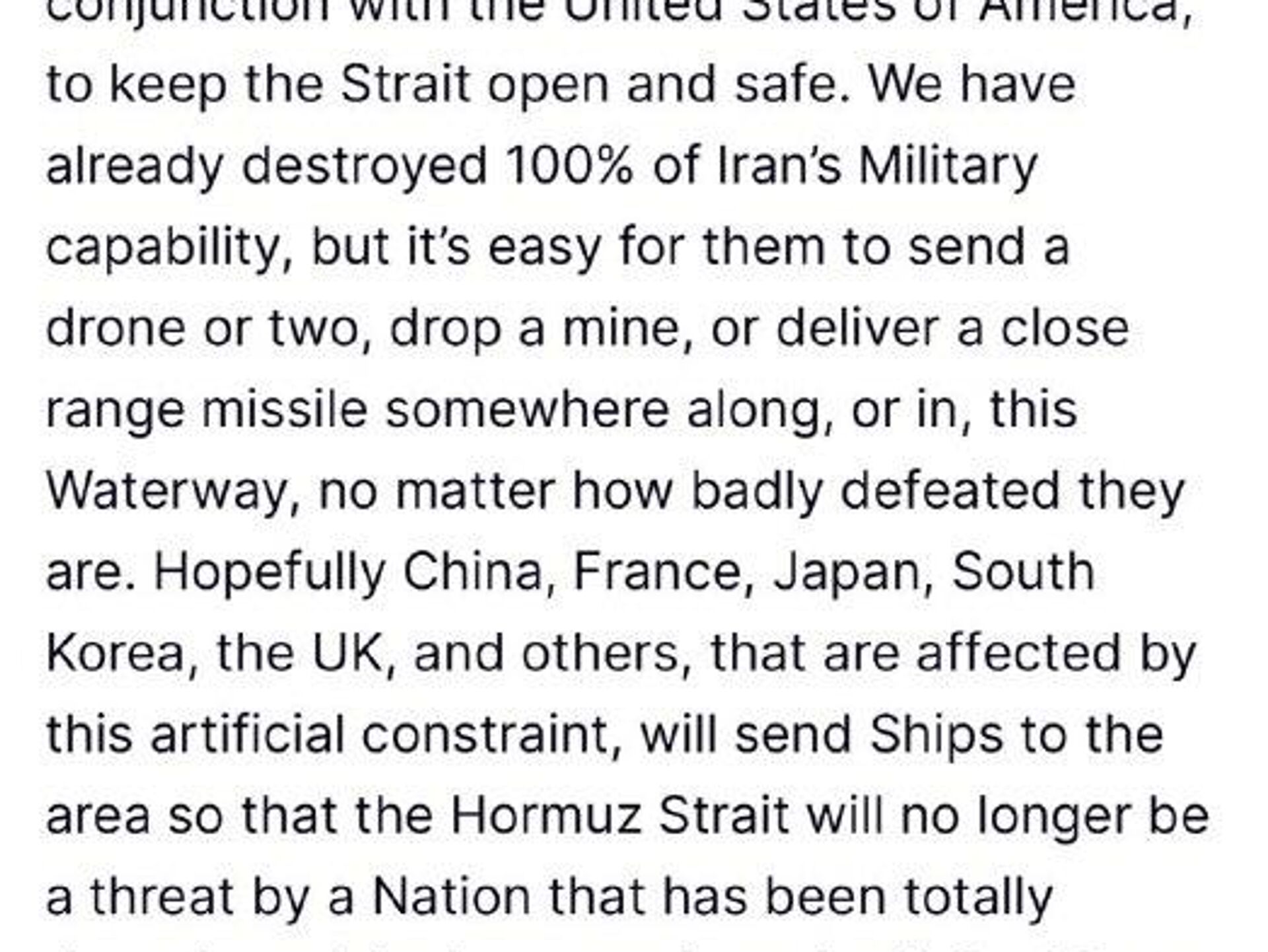 او همچنین از چین، فرانسه، ژاپن و سایر کشورها خواست تا کشتیهای جنگی خود را برای تضمین عبور امن به آنجا اعزام کنند.