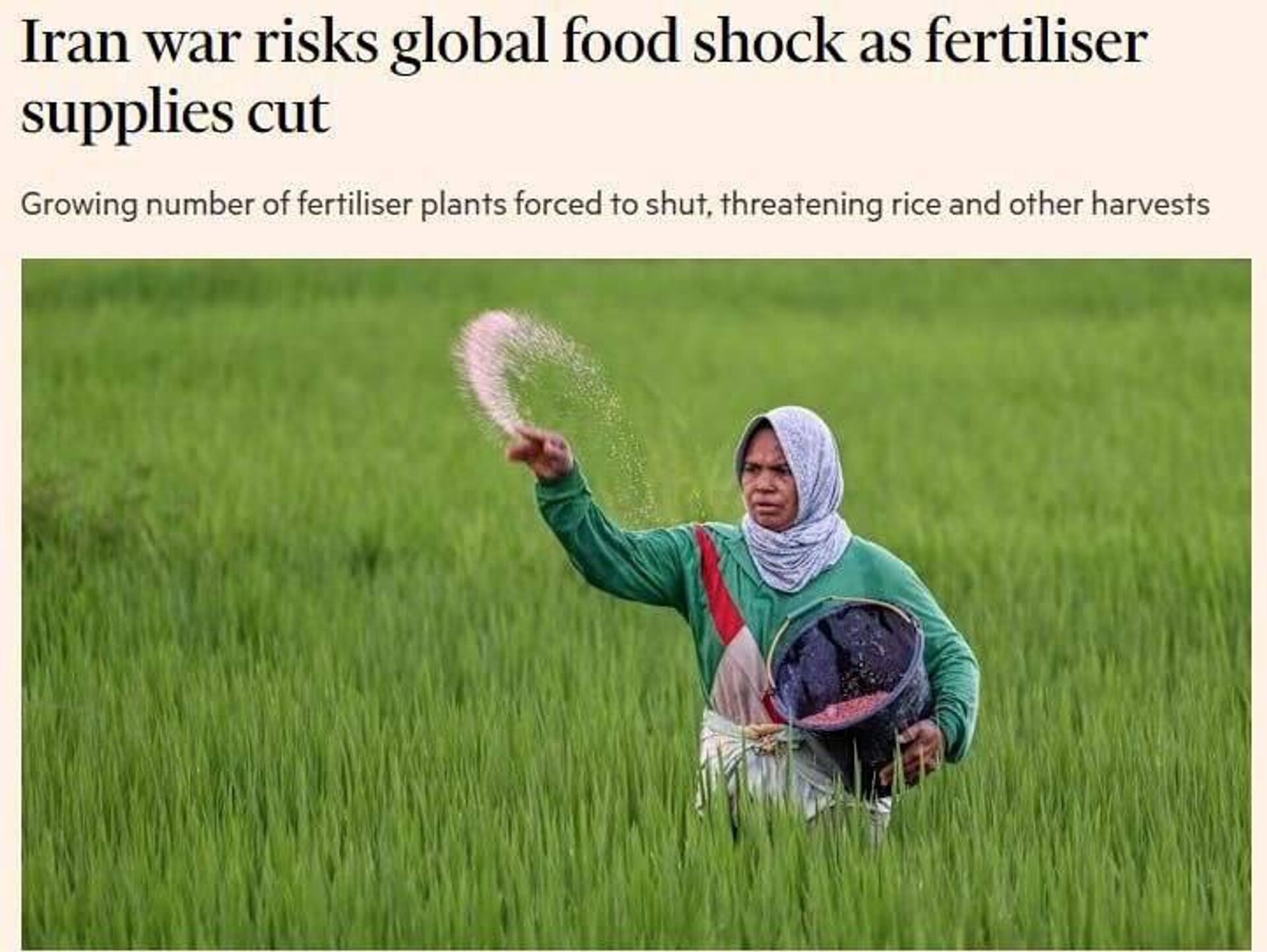 تنشهای کنونی در منطقه و درگیری با ایران میتواند با کاستن از داد و ستد جهانی کودهای کیمیایی، زمینهساز آشفتگی غذایی در جهان شود.