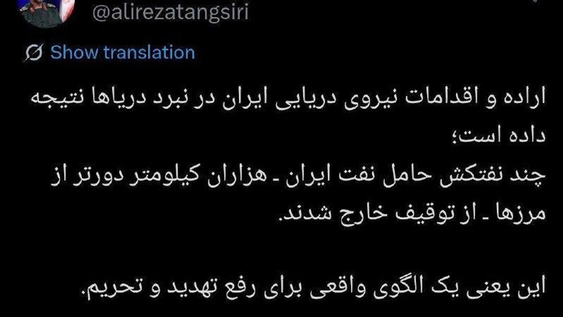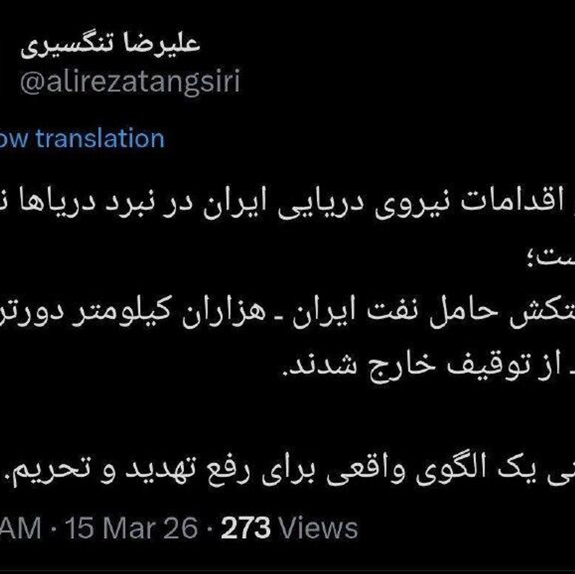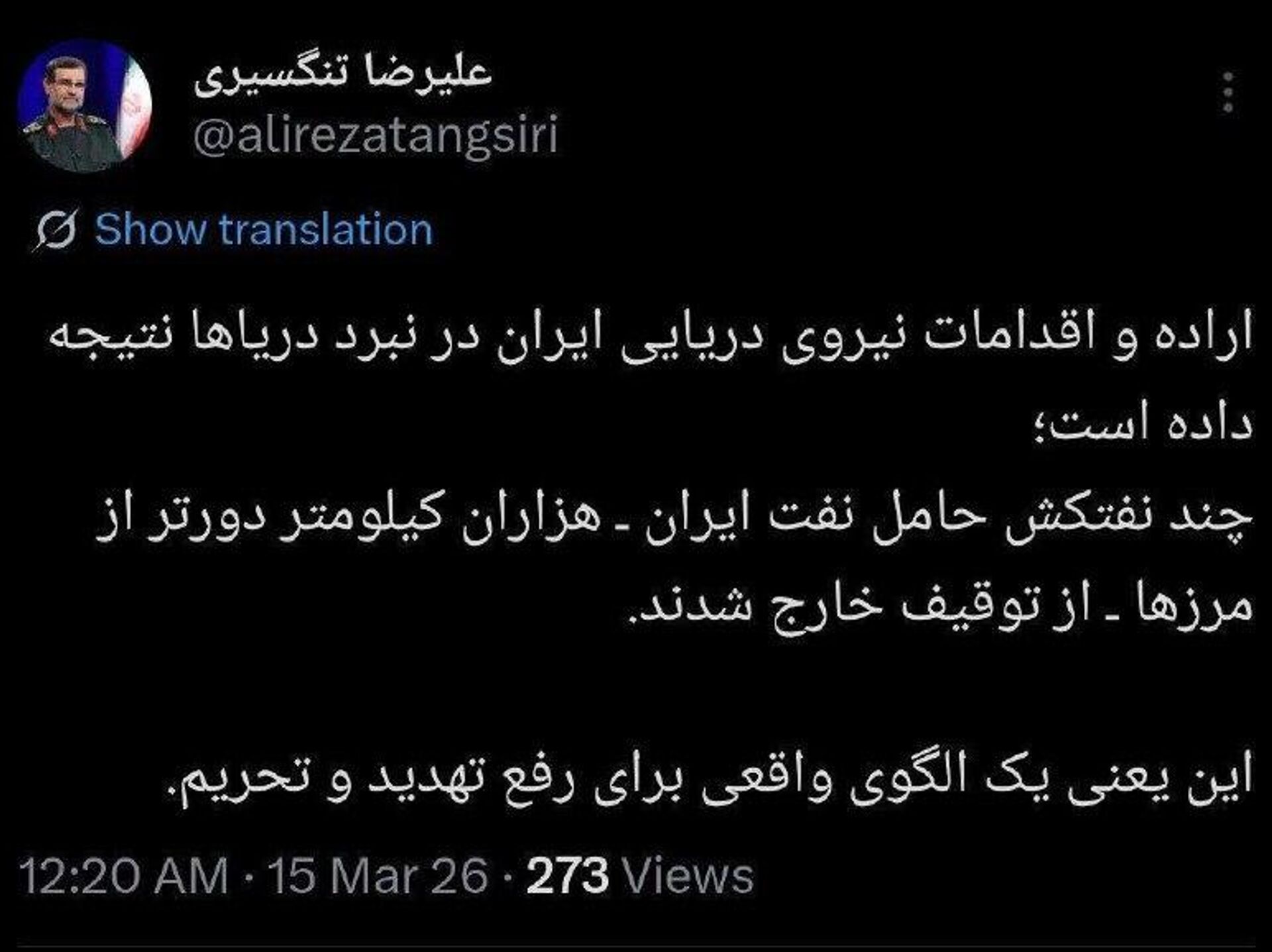 00:55 15.03.2026 (بروز رسانی شده: 01:00 15.03.2026) نفتکش های ایرانی از توقیف خارج شدند