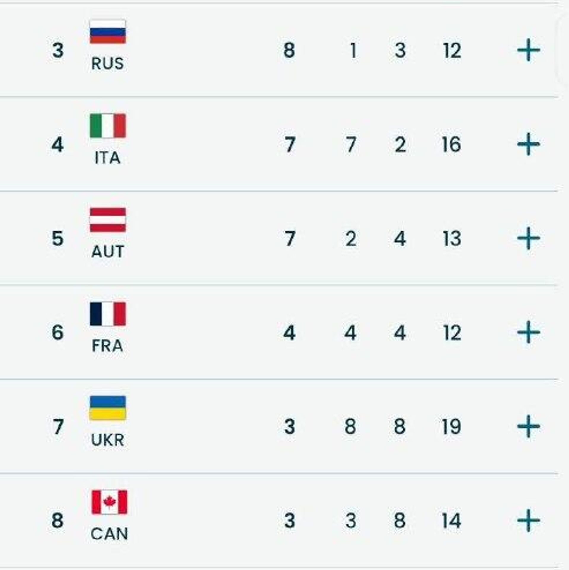 تنها شش ورزشکار روسی در این مسابقات شرکت کردند. در نهایت، فدراسیون روسیه از ایتالیا، اتریش، اوکراین، کانادا، فرانسه و سایر کشورهایی که با تیمهای کامل وارد شده بودند، پیشی گرفت. تنها چین و ایالات متحده آمریکا با هیئتهایی متشکل از 70 و 68 ورزشکار، در جایگاه بالاتری قرار گرفتند.