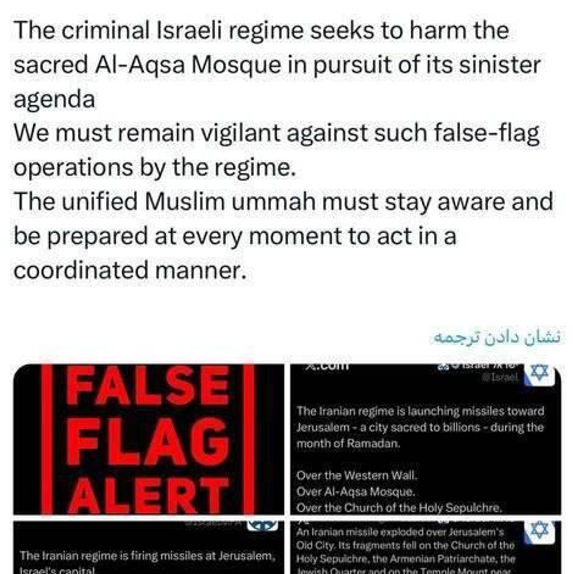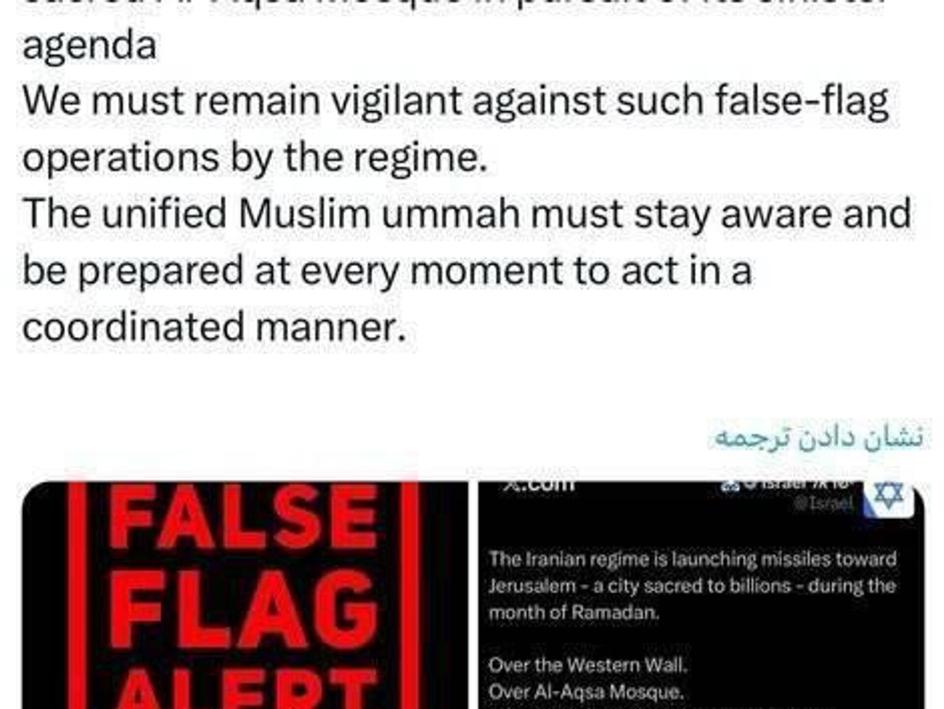 باید نسبت به عملیاتهای پرچم دروغین رژیم در این خصوص حساس باشیم.