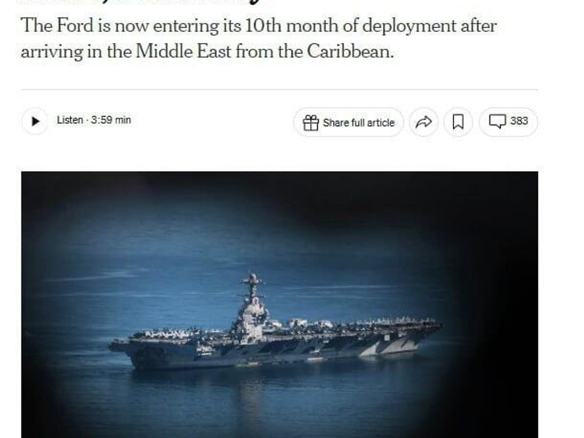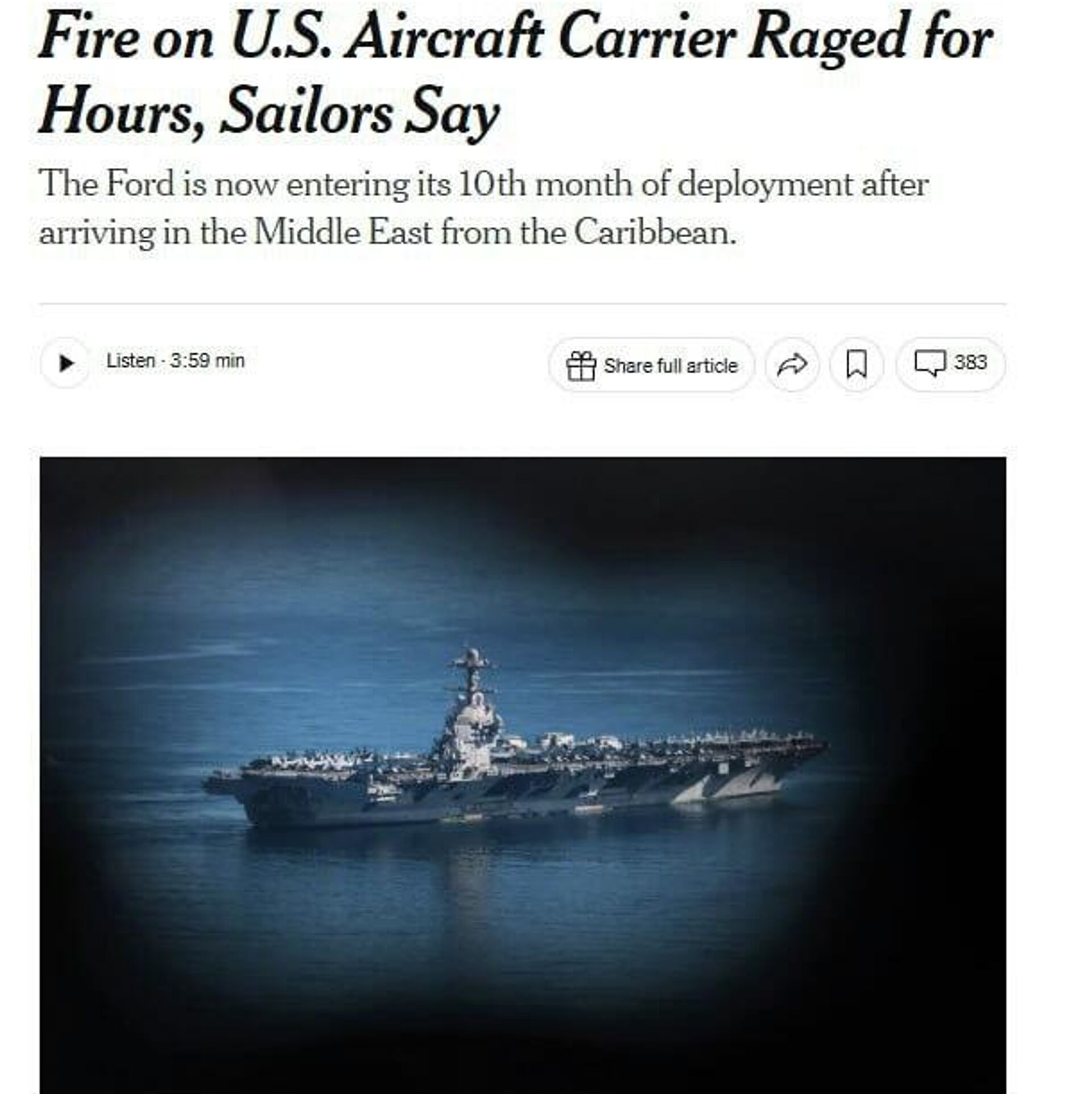 رسانه: خاموش کردن آتشسوزی در اتاق رختشویخانه ناو هواپیمابر یو اس اس جرالد فورد 30 ساعت طول کشید