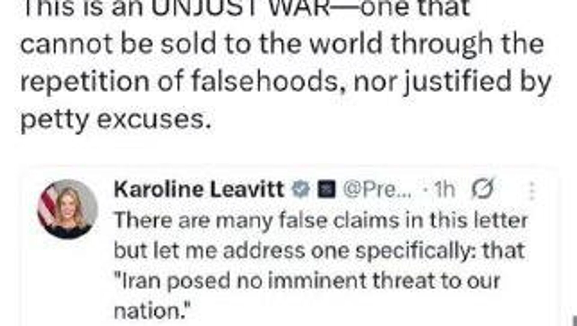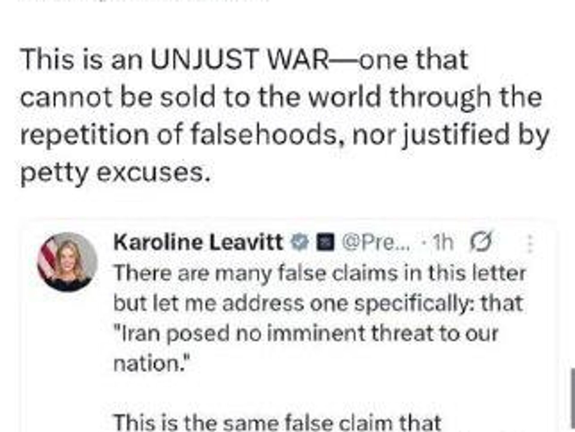 این یک جنگ ناعادلانه است؛ جنگی که نه میتوان آن را با تکرار دروغها به جهانیان قبولاند و نه میتوان آن را با بهانههای واهی توجیه کرد.