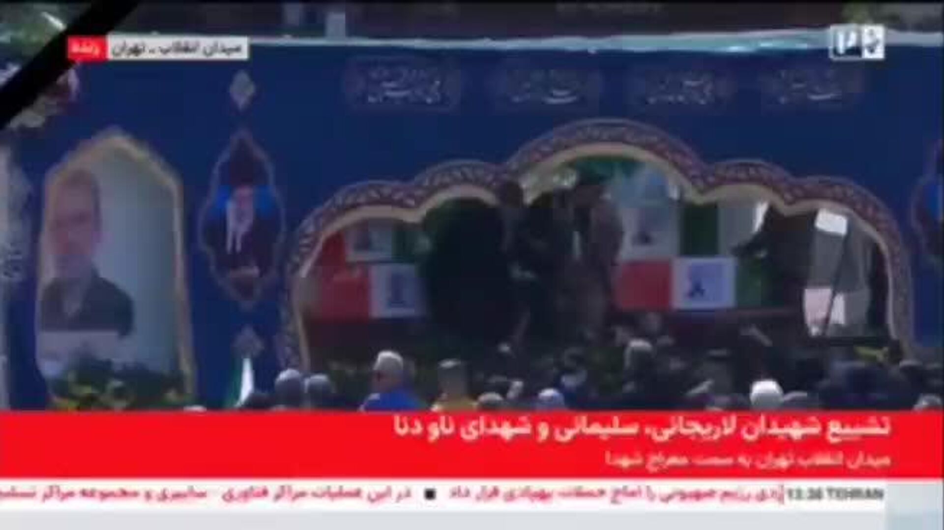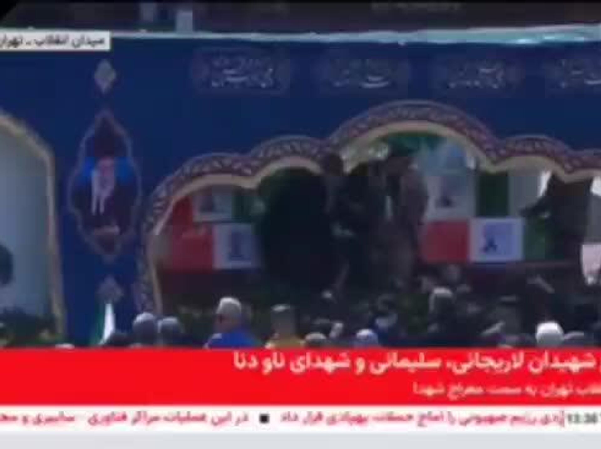 14:07 18.03.2026 (بروز رسانی شده: 14:10 18.03.2026) مراسم وداع مردم با لاریجانی، سلیمانی و شهدای ناو دنا در میدان انقلاب